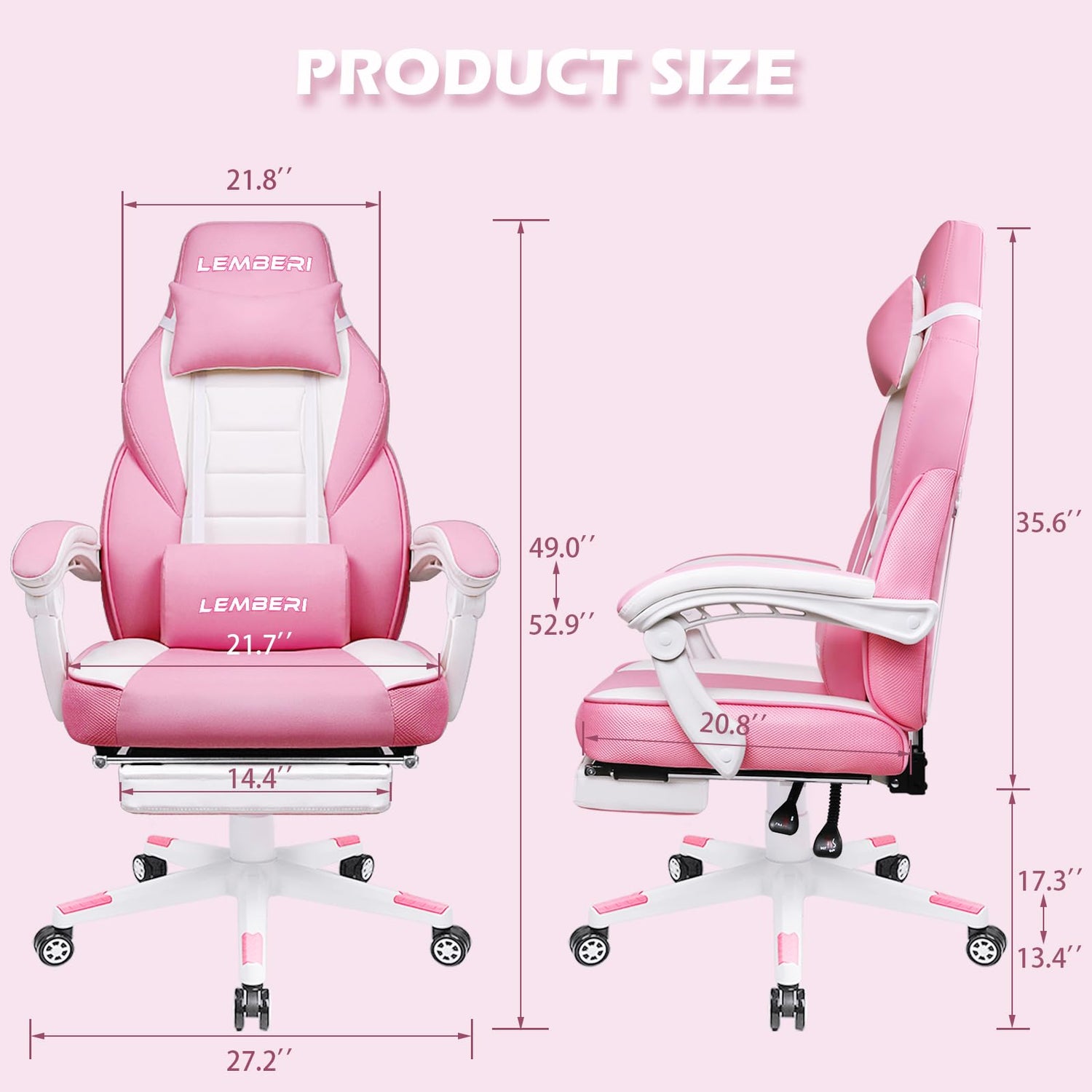 LEMBERI Pink Gaming Chair with footrest, Kawaii Cute Pink Gamer Chair for Girl,Girls Video Game Chairs,Computer Gaming Chair with Headrest and Lumbar Support