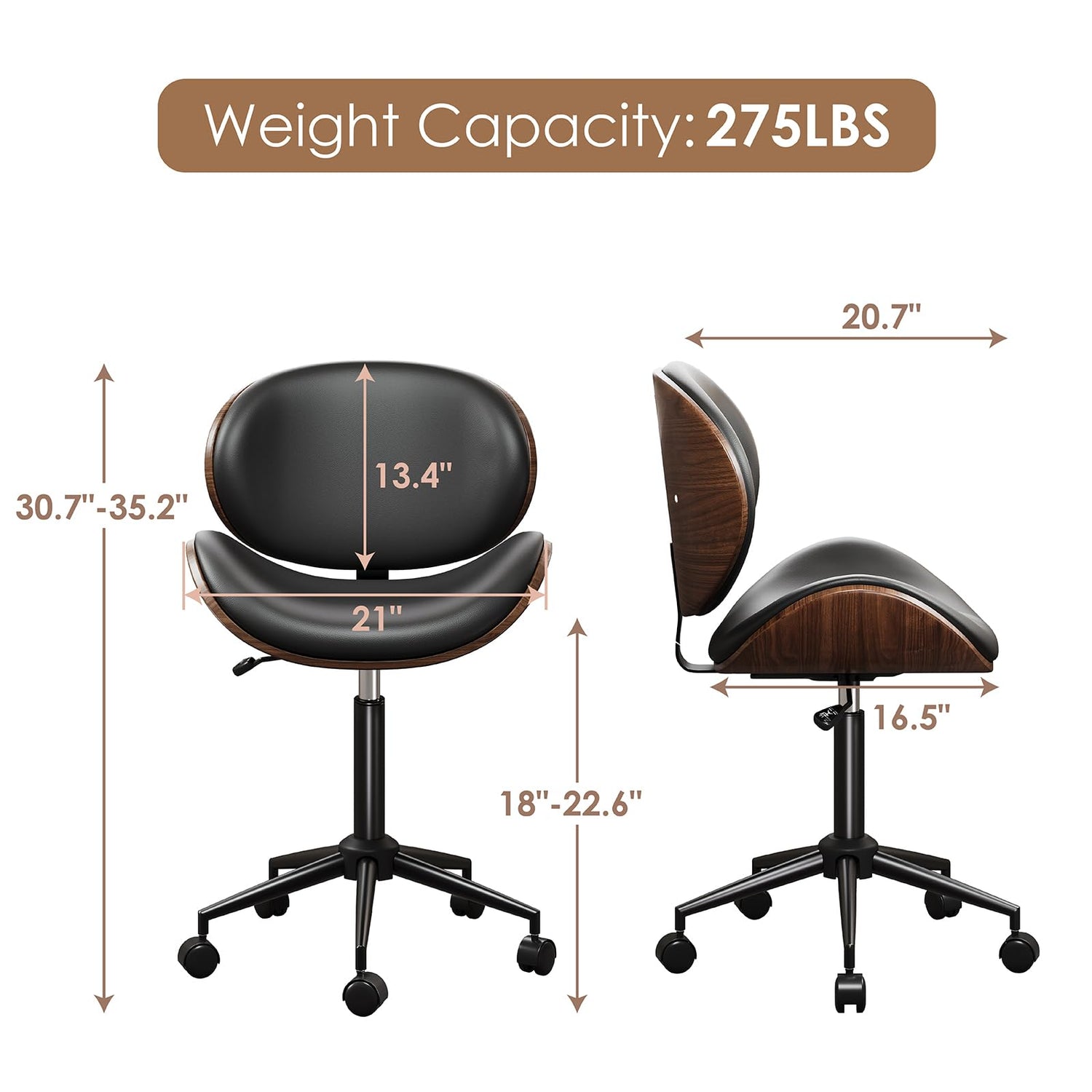 • 【Sturdy Metal Base】Metal base of armless task chair adds to the sturdiness and stability of chair. Weight capacity up to 275 lbs. Mid-century modern home office chair suitable for office, study.