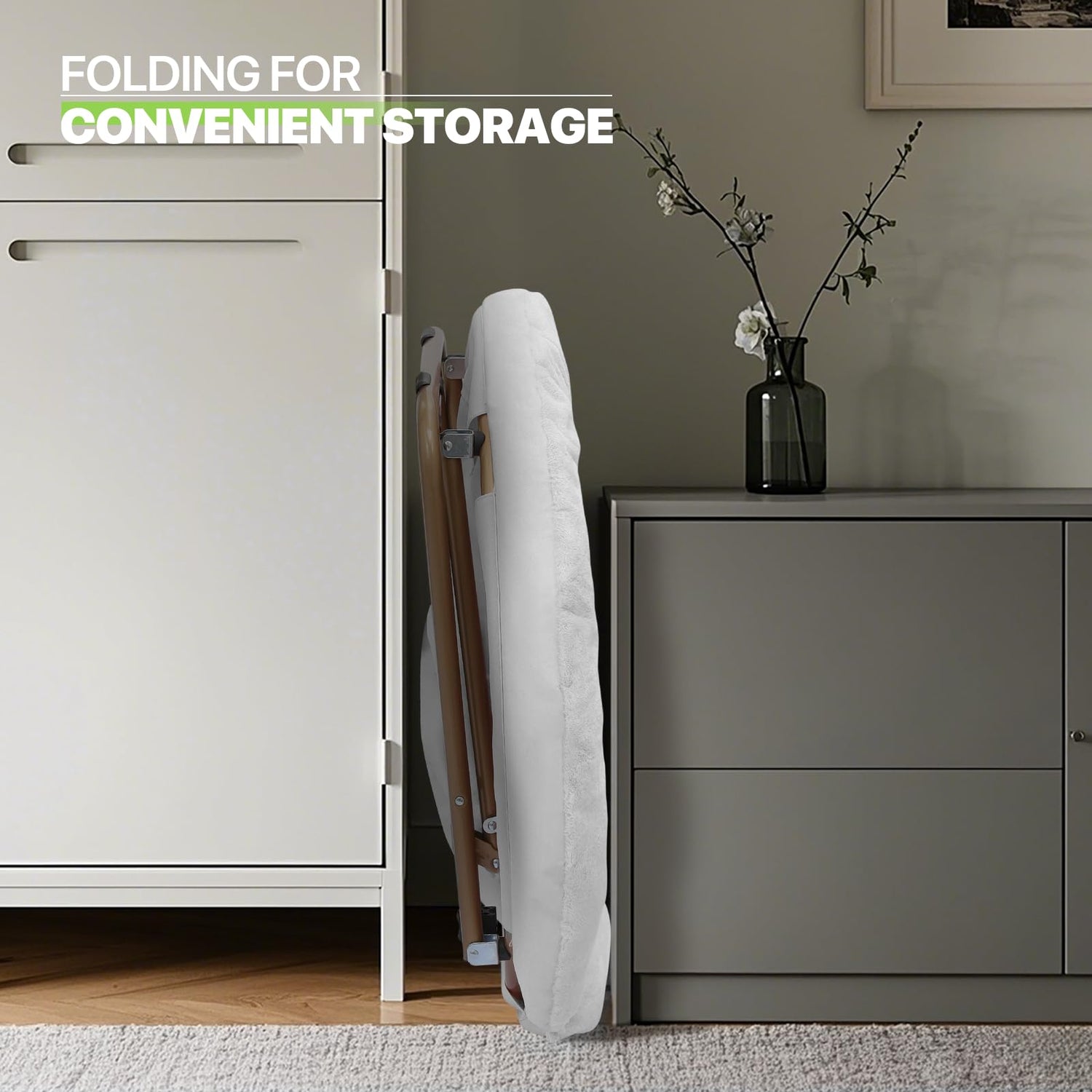 - Low Maintenance: Upholstered in super soft faux fur, this foldable saucer chair feels silky-soft while resisting wear. Simply spot clean to maintain its beauty. The sturdy metal construction ensures lasting comfort, whether used as a dorm chair or bedroom accent