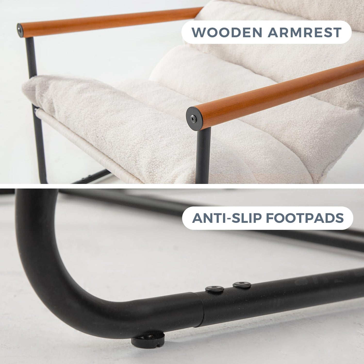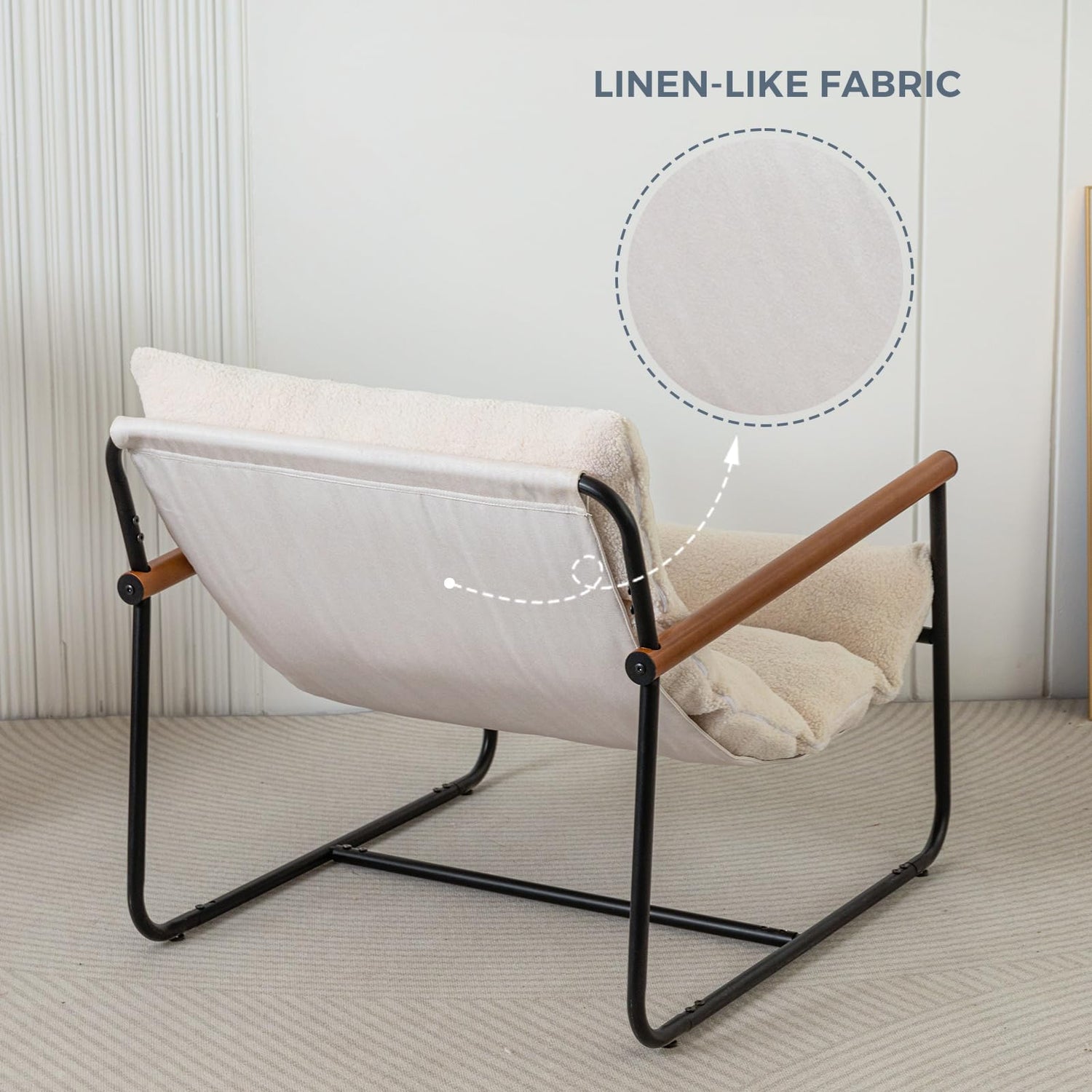 MAXYOYO Sherpa Accent Chair, Boucle Arm Chair Living Room Chair, Reading Accent Chair, Mid Century Modern Bedroom Chair,Teddy Armchair Wooden Arms Metal Frame