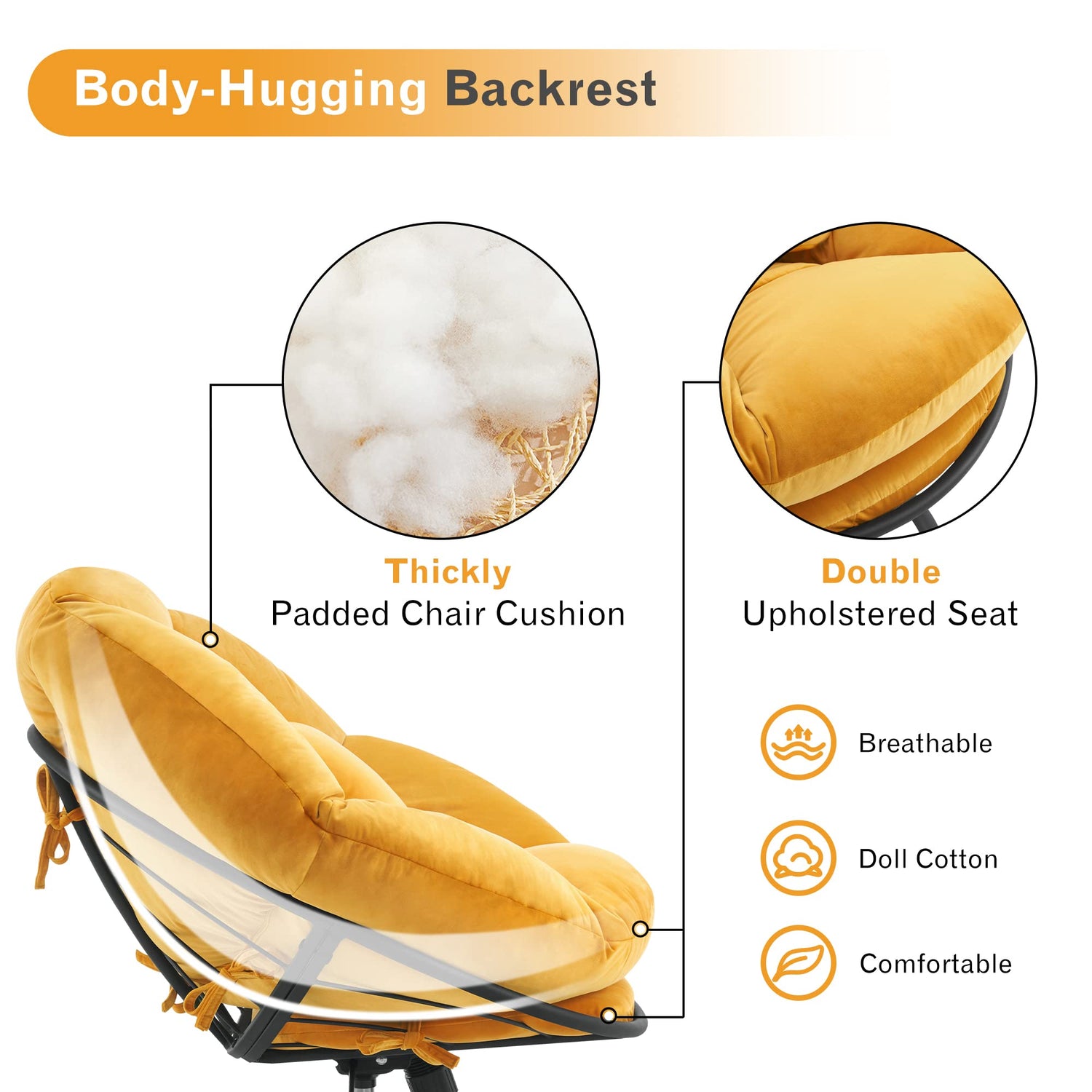 - [Velvet Wraparound Seating]- The chair bowl design offers a wide and generous seat with an inviting embrace, allowing you to move freely and shift position. Wrapped by soft and skin-friendly velvet, the cushion of 5.9’’ thickness is deeply padded, offering you cozy seating and a sink-right-in feel.