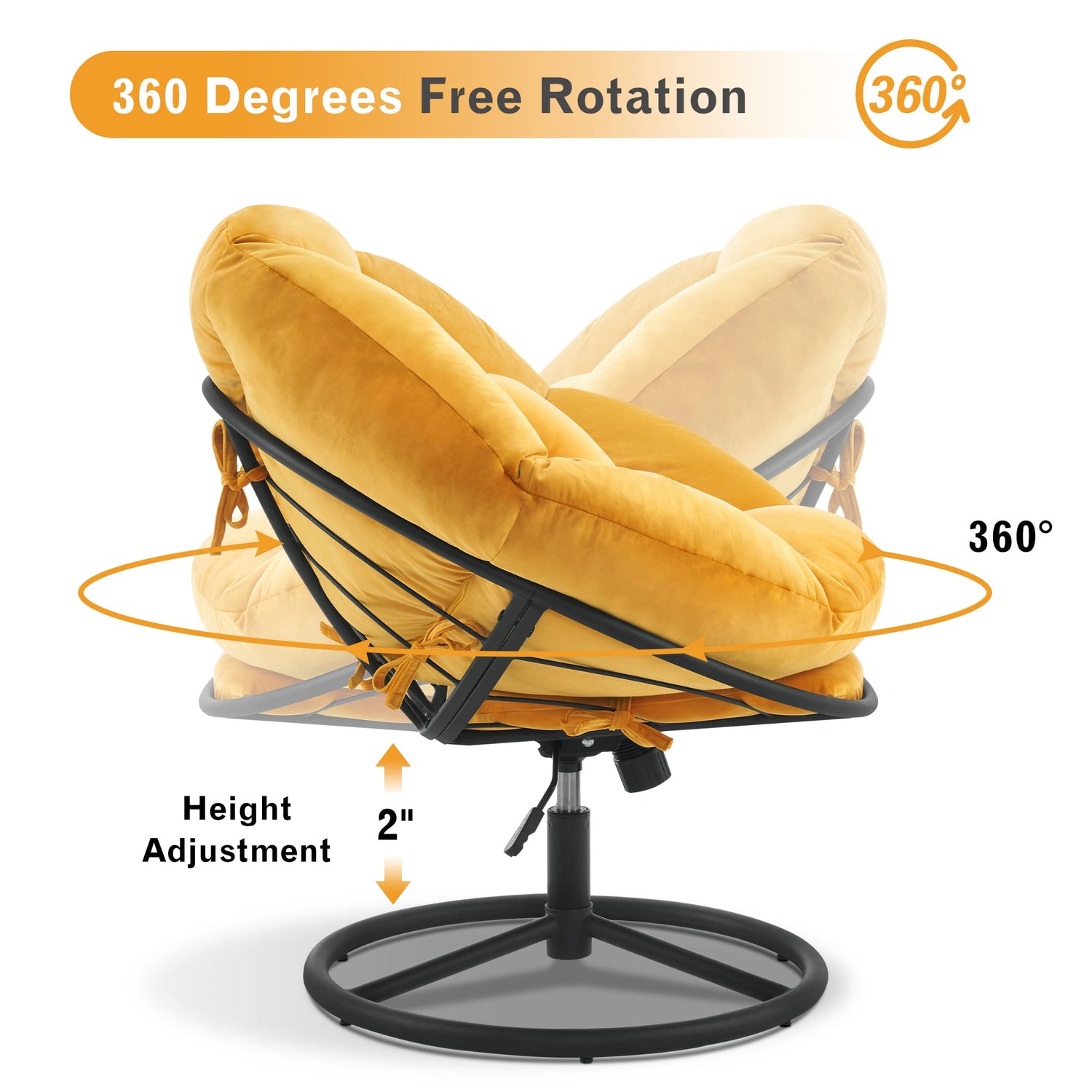 - [360-Degree Swivel Enjoying] - The spindle of gas lift cylinder helps you spin a full circle on this round chair so that you can enjoy the swivel chair in any direction. This free rotation allows for relaxing, easy conversations or simply lounging with your friends.