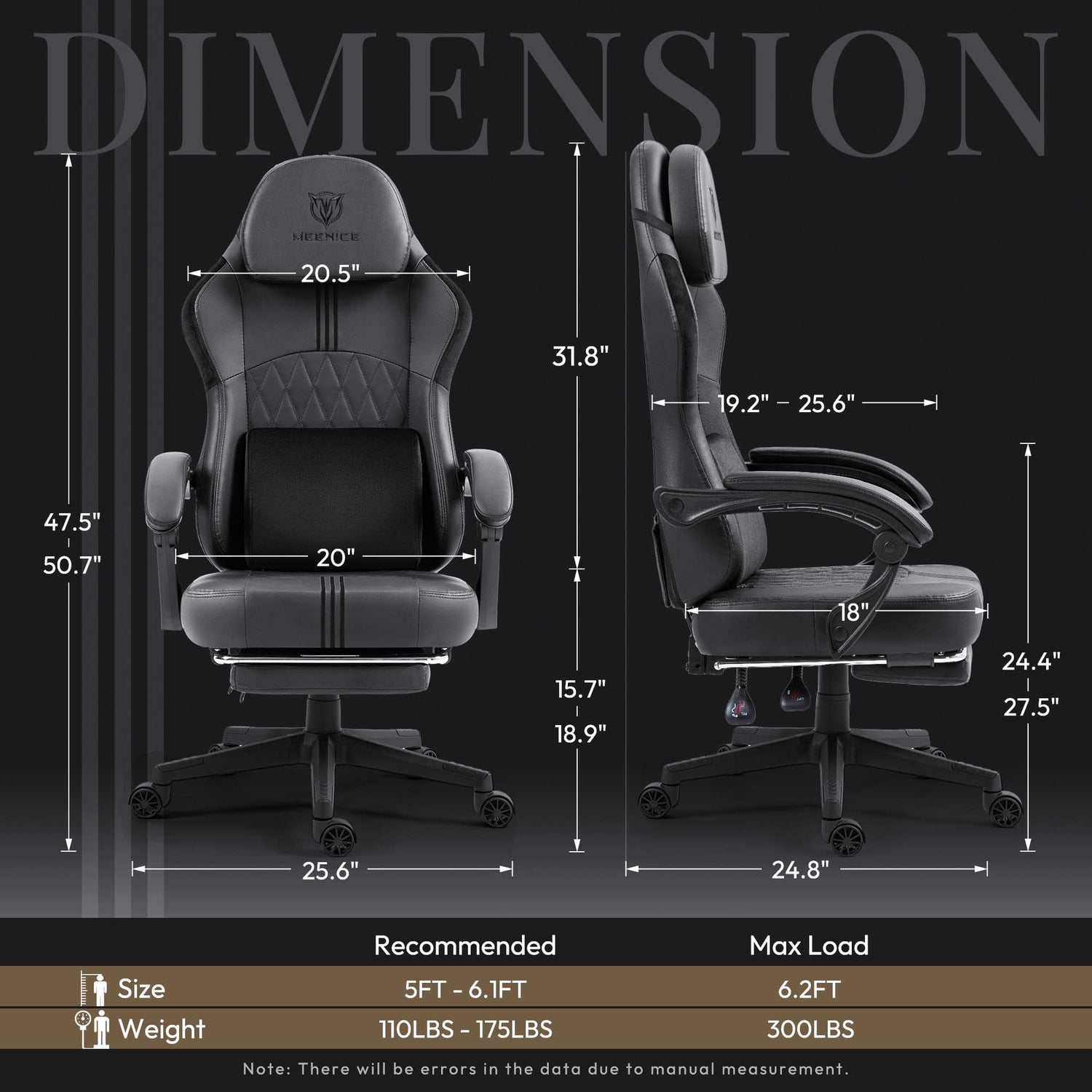 MEENICE Ergonomic Gaming Chair with Pocket Spring Cushion and Breathable Leather, Cooling Gel and Massage Lumbar Support, Adjustable High Back Office Chair for Adults and Kids - Supports up to 300LBS