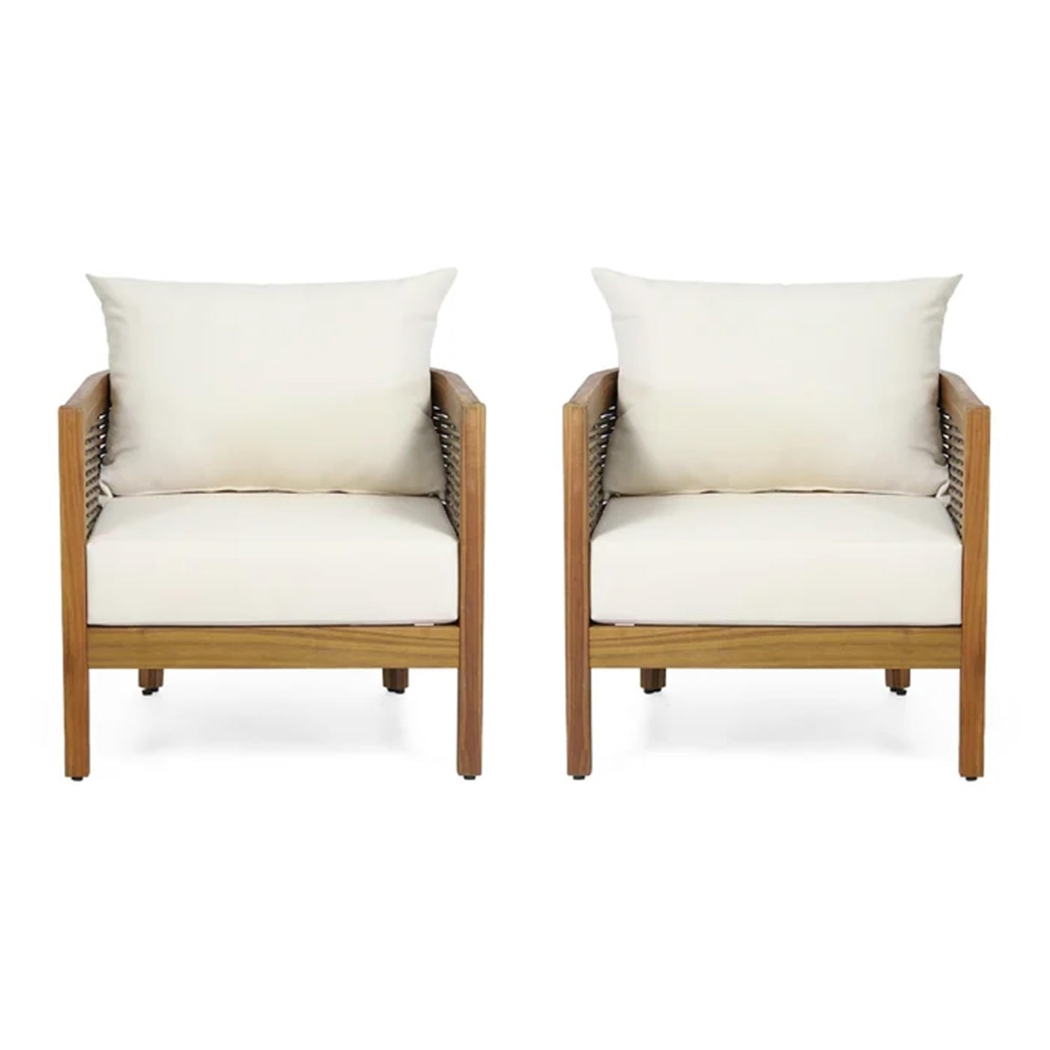 Merax Set of 2 Outdoor Acacia Wood Wicker Club Chair with Cushion,Patio Furniture Conversation Seat for Backyard