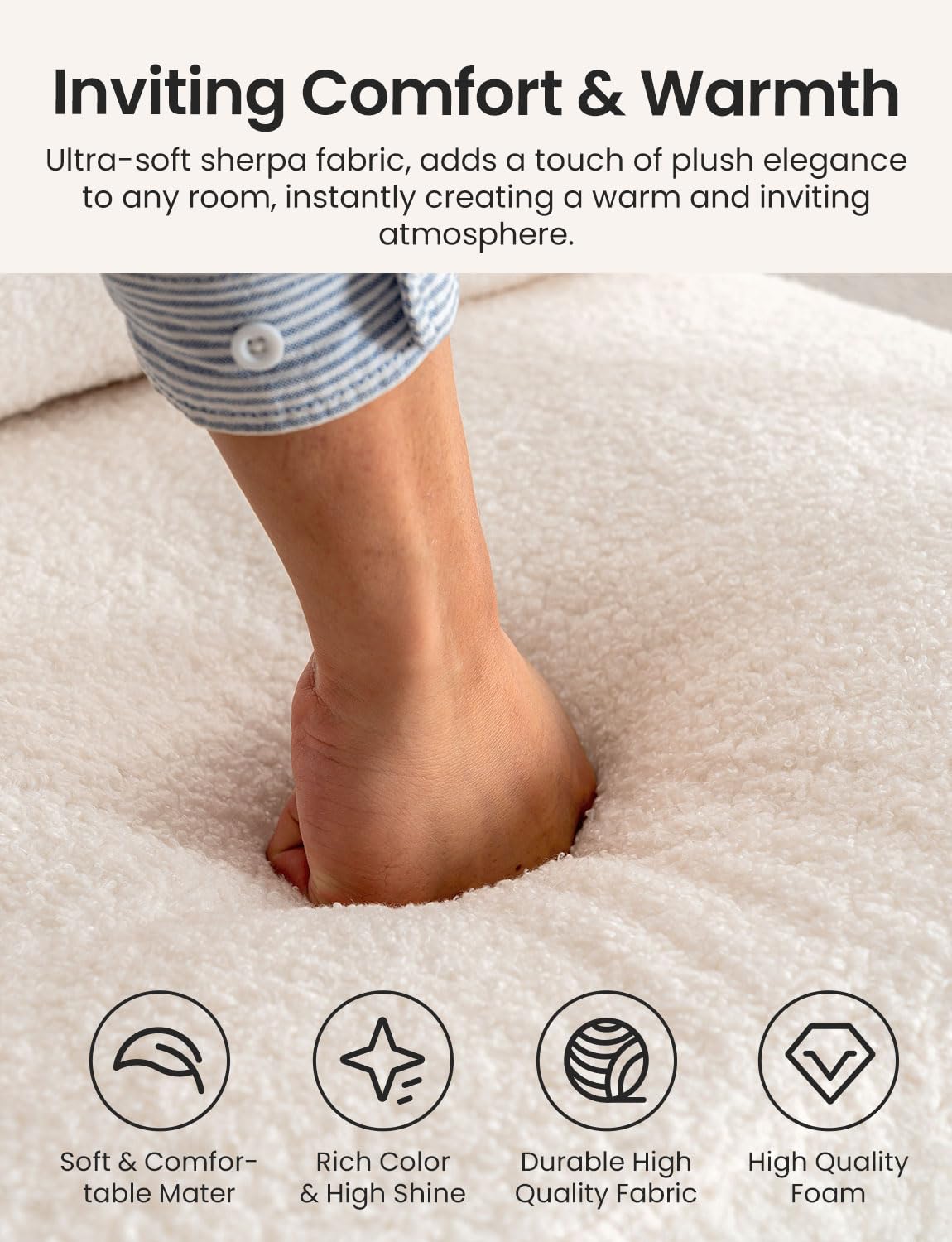 - Inviting Comfort & Warmth: Wrapped in soft sherpa boucle fabirc or textured leather, offering warmth and style. Whether placed as a reading nook chair, chair for living room, or used as a cozy chair for bedroom, it creates a relaxing atmosphere.