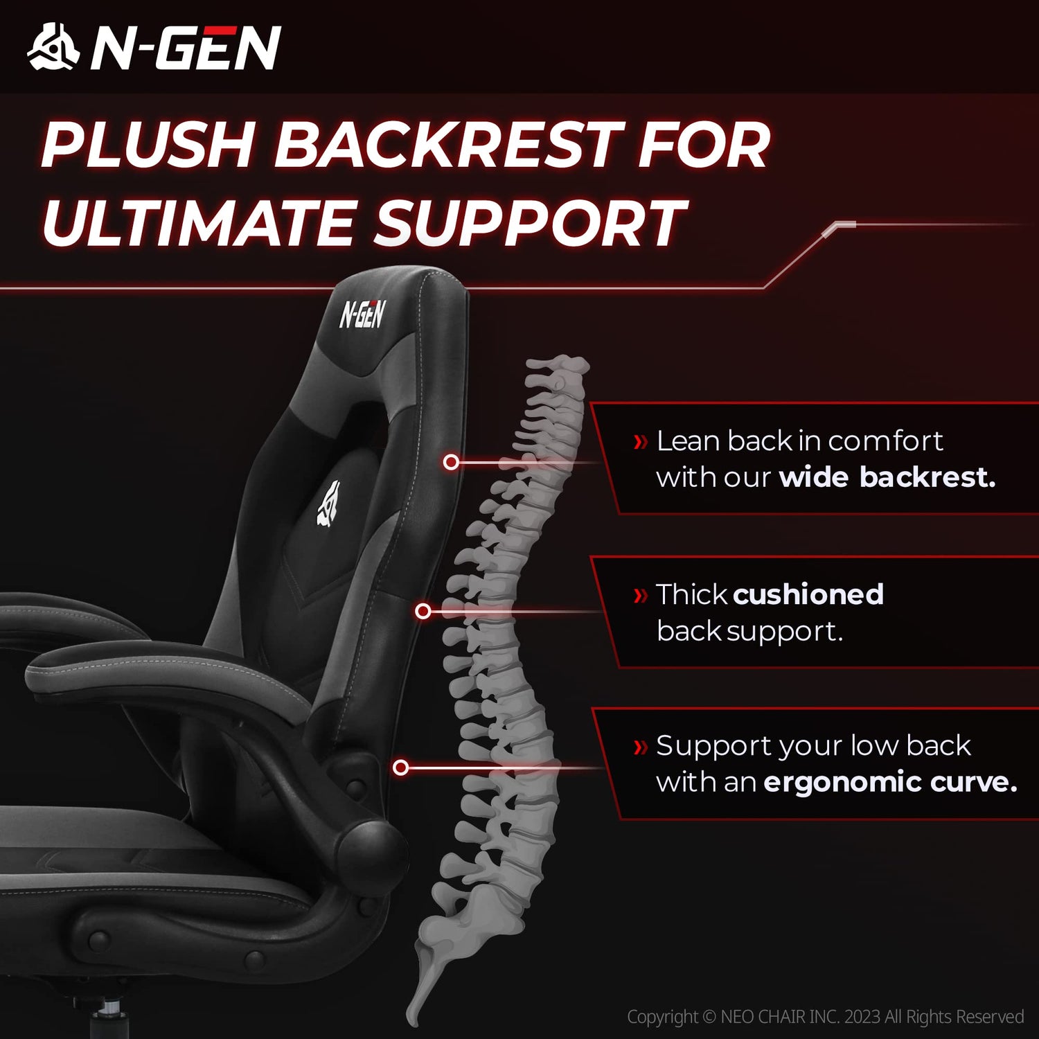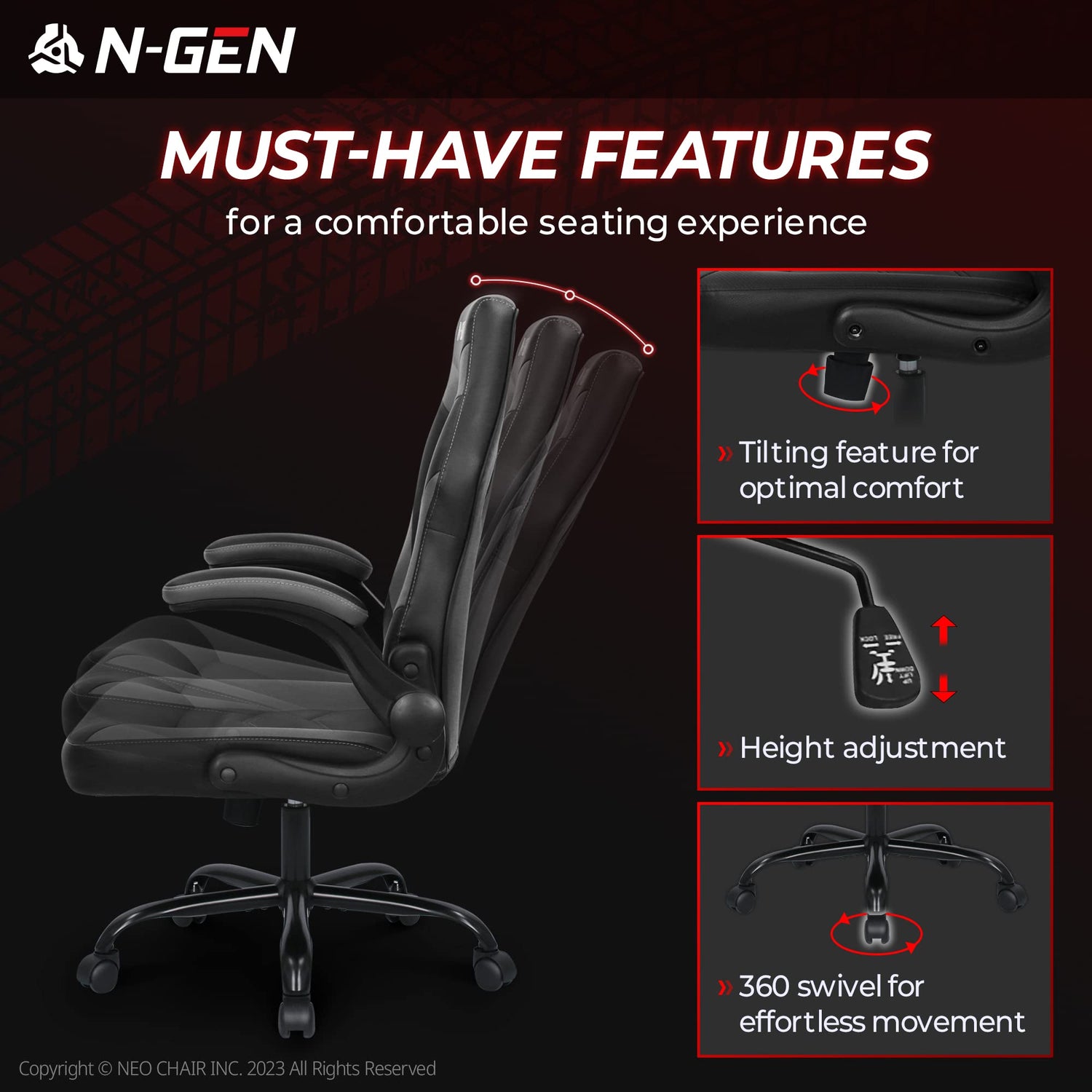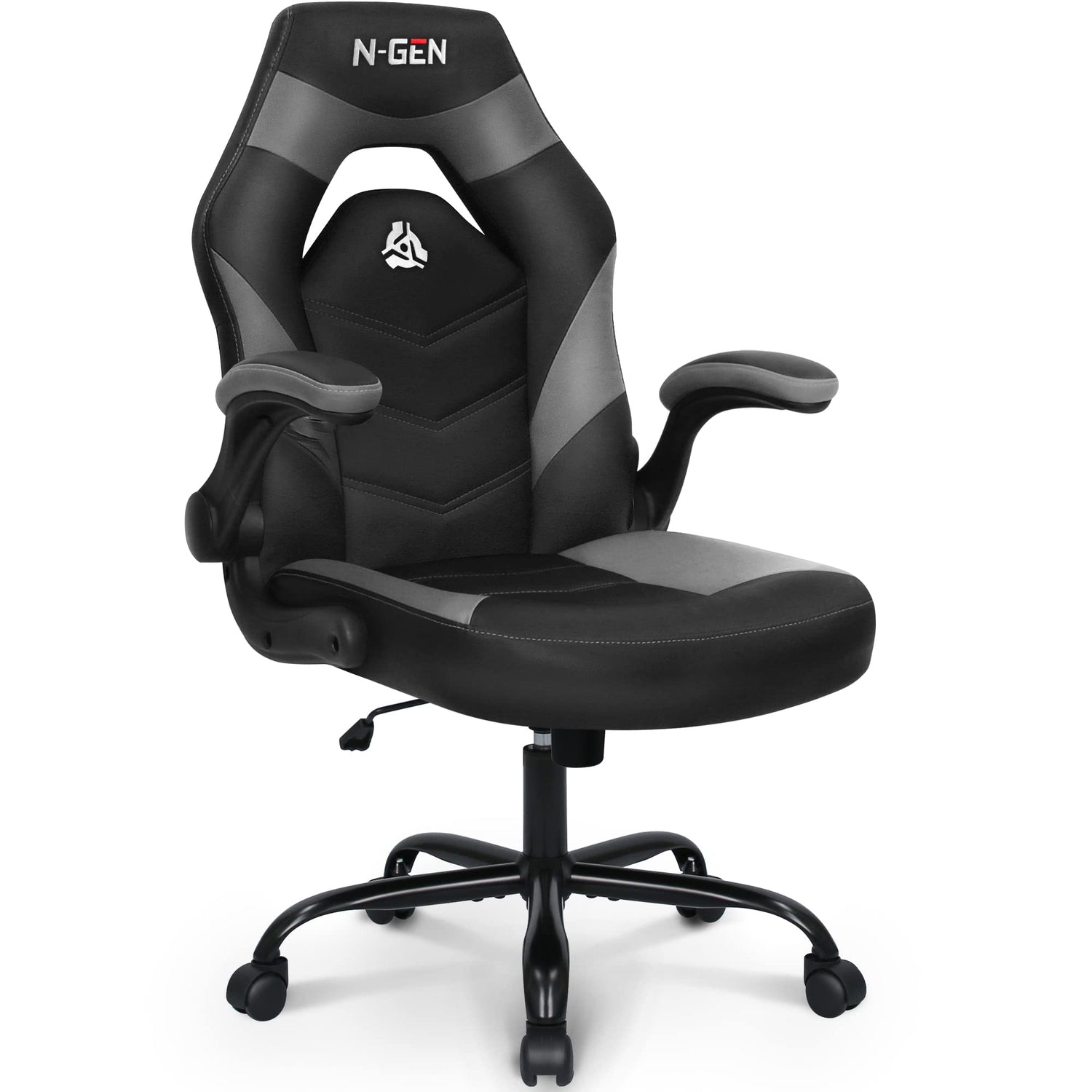 N-GEN Video Gaming Computer Chair Ergonomic Office Chair Desk Chair with Lumbar Support Flip Up Arms Adjustable Height Swivel PU Leather Executive with Wheels for Adults Women Men (Grey)