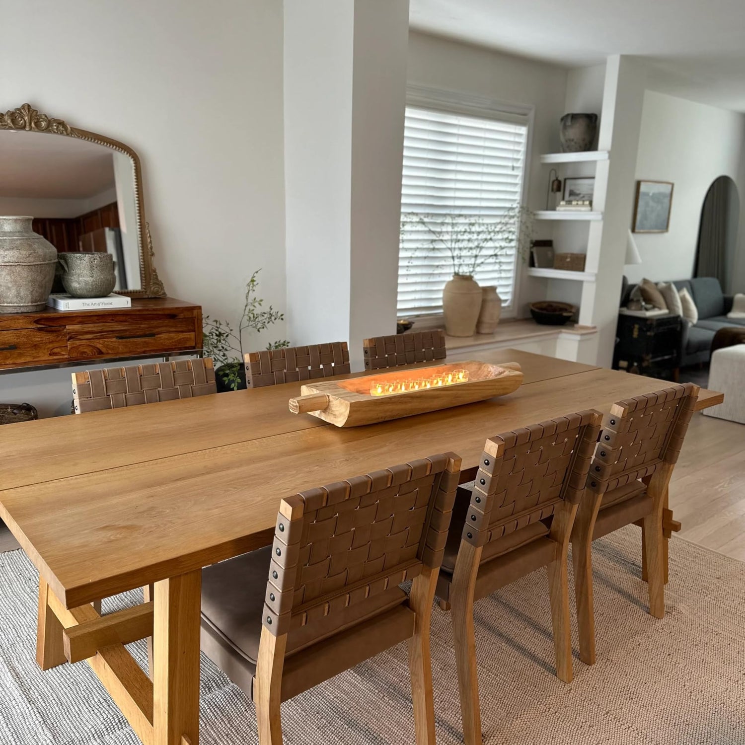 Details: Introducing the Cohen dining chair, a stunning blend of style and comfort for your dining area. With a comfortably low 19" seat height, this upholstered dining chair is thoughtfully designed to make your dining experience extraordinary. It features a comfortably padded saddle seat upholstered with high quality faux leather. The legs are made from solid rubberwood in natural finish, making each piece truly unique. And the star of the show, Cohen's hand-woven faux leather backrest, not only adds a touch of artisanal beauty but also provides excellent comfort.
