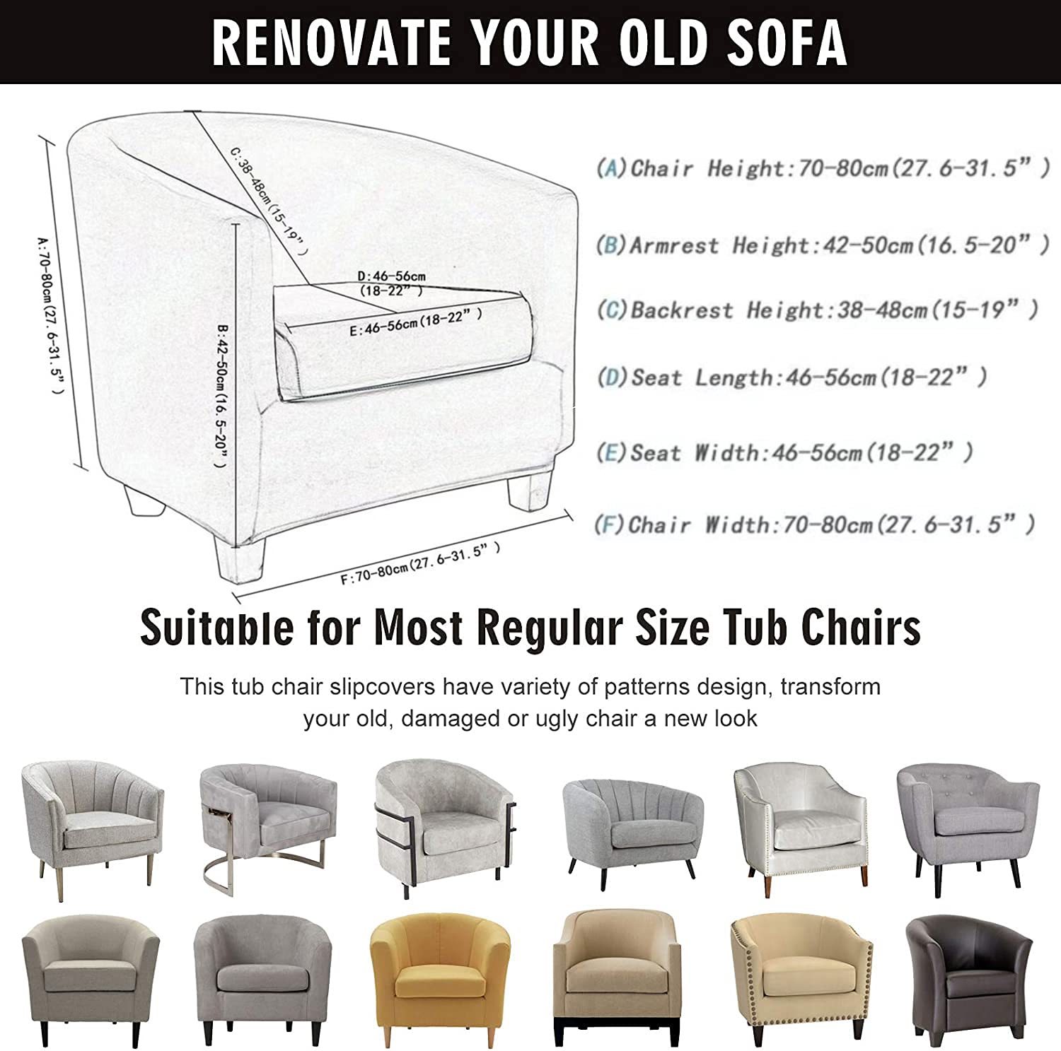- Perfect Fit: Solve your size troubles. NILUOH club chair slipcovers fit the chair height: 70-80cm /27.6"-34.5"; Chair Width: 70-80cm /27.6"-31.5"; Cushion width: 46-56cm /18"-22". Kindly check measurement guide in the picture and measure your armchairs before ordering. No foam rod is required for fixation. Purchase tips: It is not recommended to choose a light-colored chair cover for dark chairs, so as not to see through the color of the club chair.
