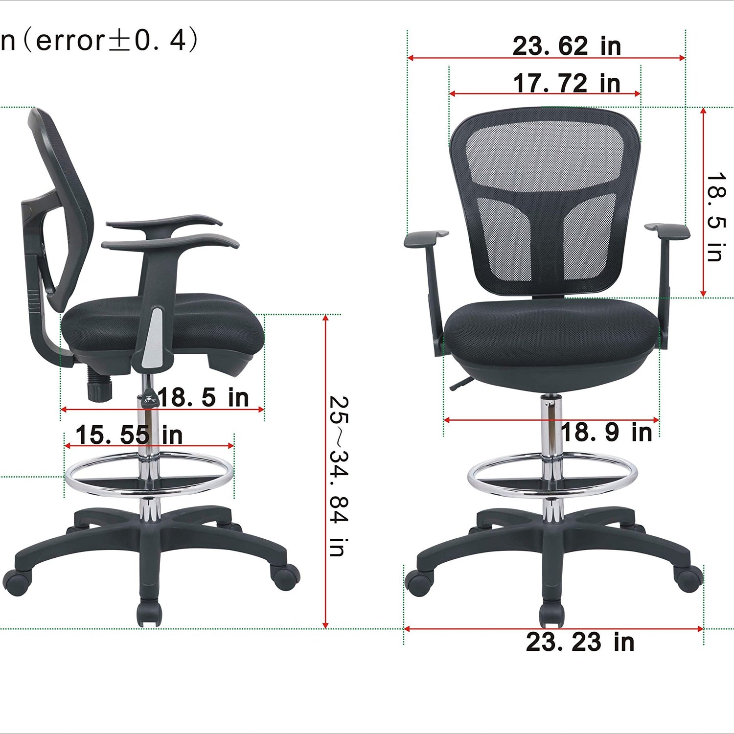 • Adjustable Height: With an easy to adjust gas lift, you can quickly adjust the height of this drafting chair to suit a normal desk or a high table or standing desk as it extends from 24 inches at the lowest to 35 inches at the highest.