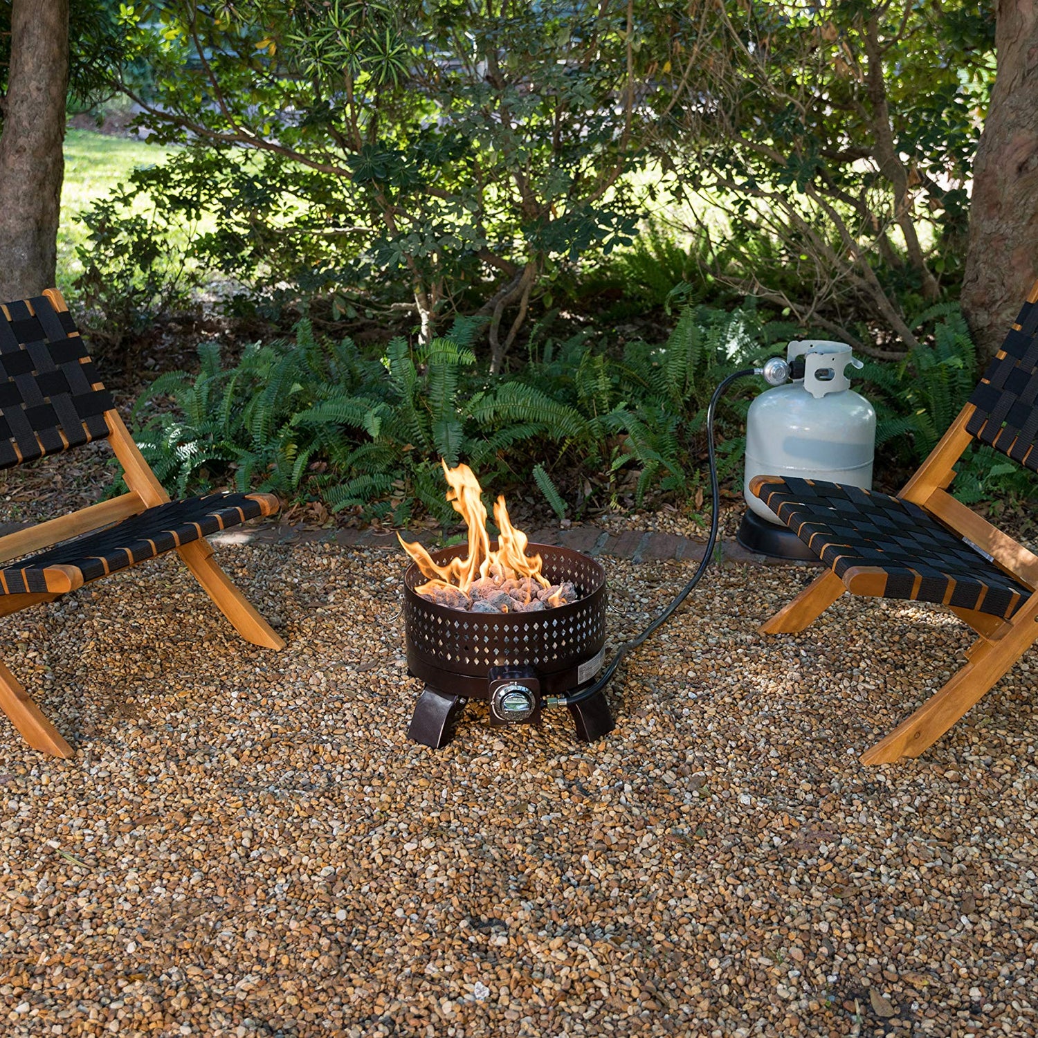 • PATIO SENSE 62774: The Sava Folding Chair is low-slung, portable seating with a solid acacia wood frame and woven webbing seat and back.