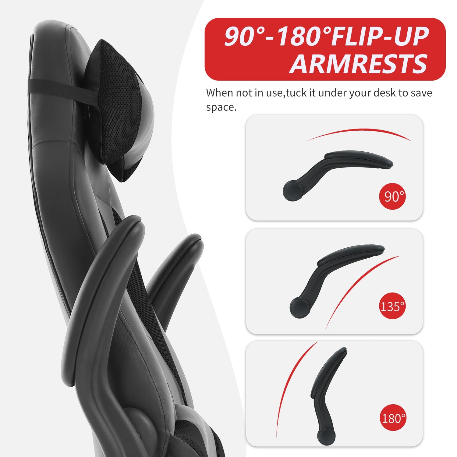 • Adjustable Headrest and Private Custom:The adjustable gaming chair headrest provides excellent neck and shoulder support, reducing strain and promoting relaxation during intense gaming sessions. The padded flip-up arms of desk chair allow for convenient arm placement and can be flipped up to save space or adjusted to your preferred height. With adjustable height and reclining angle, tension control and rocking function, you can customize your seating experience to your liking with gamer chair.