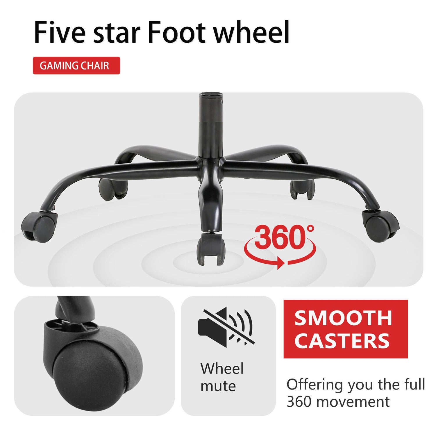 • Seating Comfort and Solid Stability:The gaming chair features a high-density foam padding that offers superior seating comfort, ensuring you stay comfortable even during extended gaming sessions. Its sturdy metal frame and heavy-duty base provide solid stability and durability, allowing the desk chair to support up to 250 pounds. The smooth-rolling casters are designed for both mobility and stability, enabling easy movement while ensuring thegamer chair stays firmly in place when desired.
