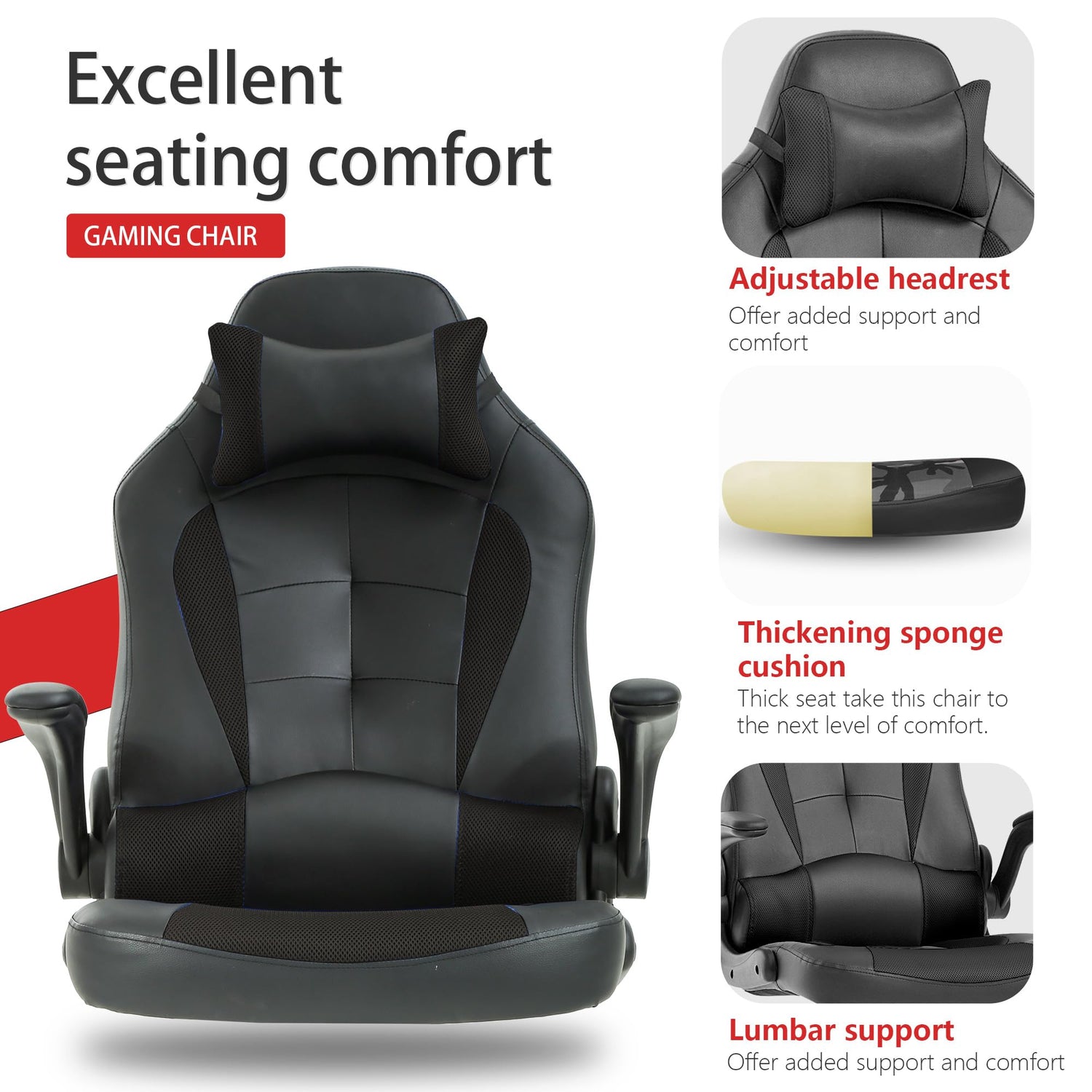 • Ergonomic Design:Our gaming chair is ergonomically designed to provide optimal support and comfort for your body during long gaming sessions or work hours. Desk chair contoured backrest with built-in lumbar support helps maintain a healthy sitting posture and prevents back strain or fatigue. The curved design of the gamer chair follows the natural curve of your spine, reducing the risk of developing posture-related issues.