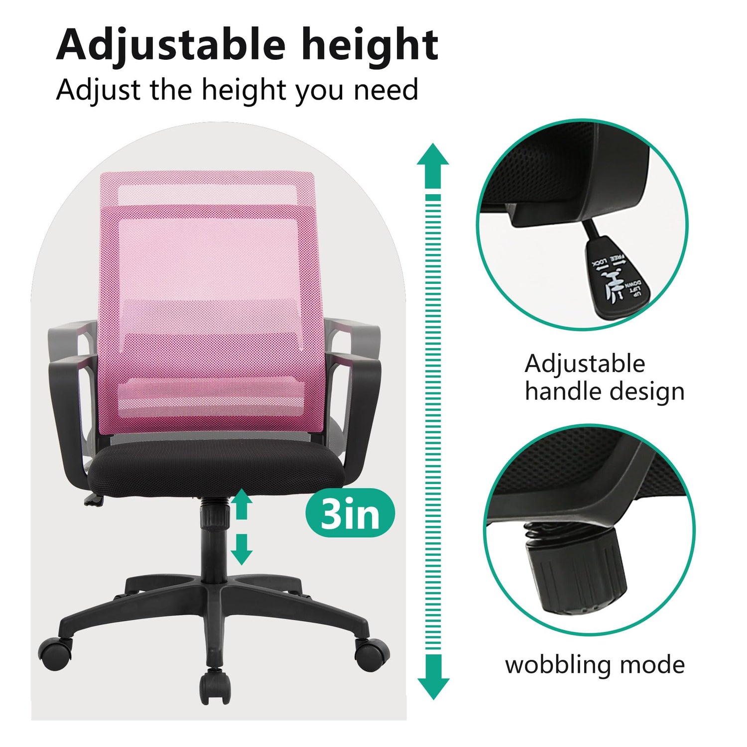 PayLessHere Gaming Chair Ergonomic Computer Chair Office Chair Video Game Chairs with Lumbar Support Desk Chair Armrest Mid Black Cushion Swivel Rolling Chair with Wheels for Home Office (Pink)