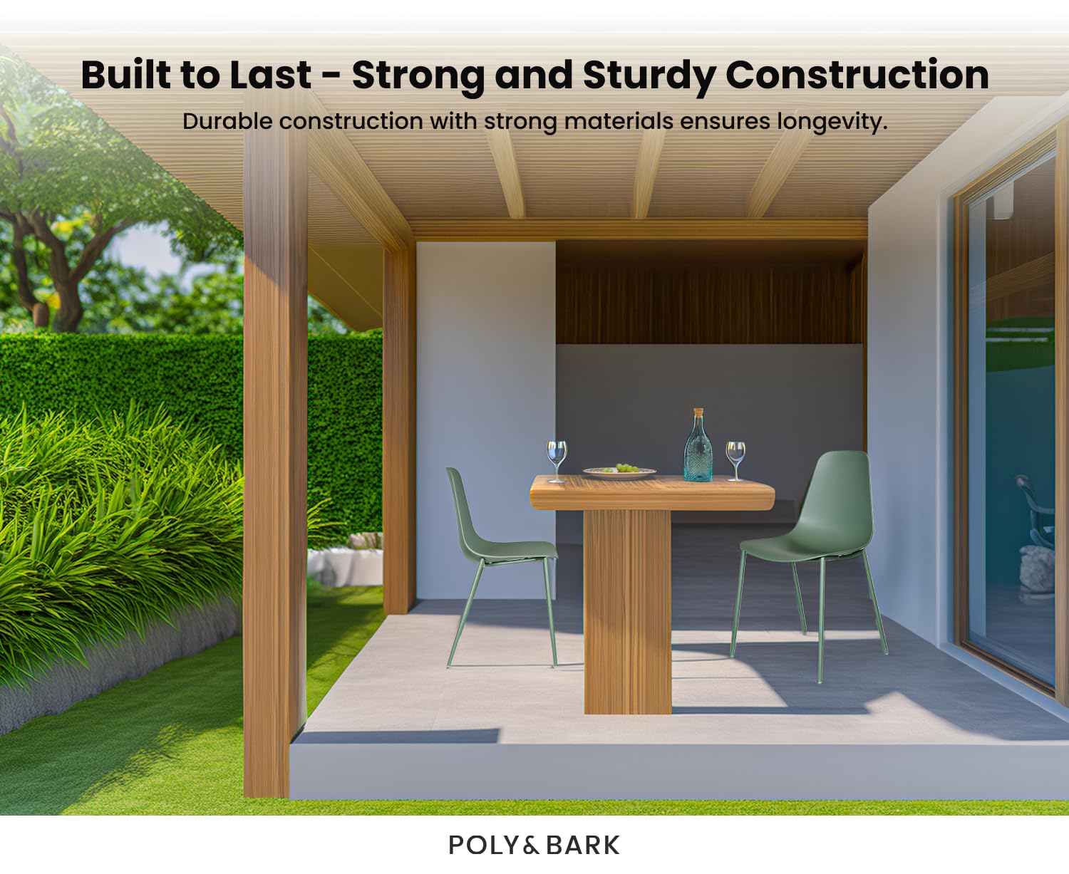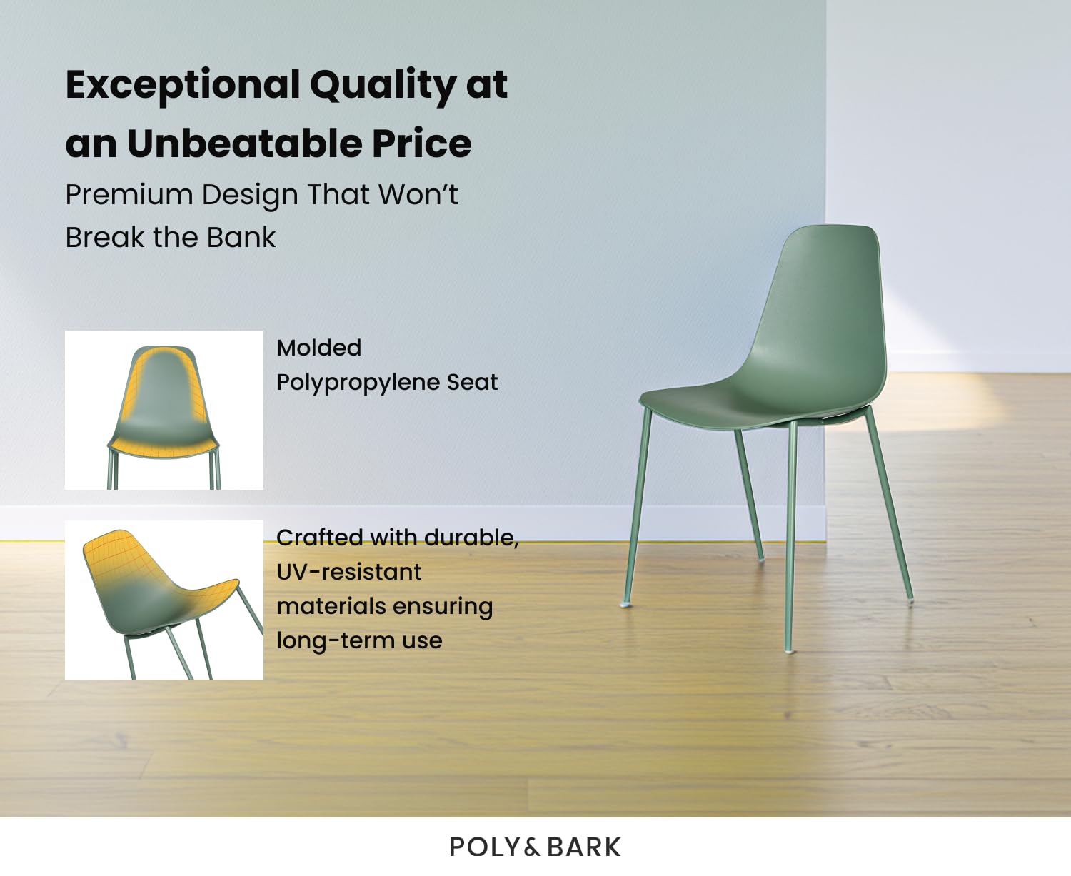 - Molded Polypropylene Seat: Crafted with a durable and UV-resistant molded polypropylene seat, these dining chairs set of 4 in Ebony Black ensure longevity and a vibrant color that stands the test of time.
