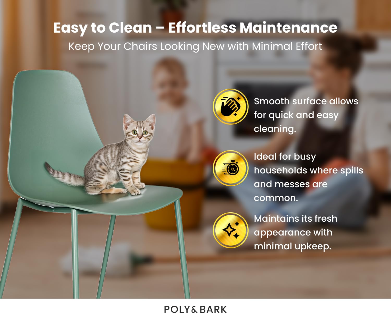 - Stylish Isla Mid Century Modern Design: Elevate your dining space with this set of 4 modern chairs in Ebony Black by POLY & BARK, showcasing a chic mid century modern style that effortlessly combines retro charm with contemporary appeal.
