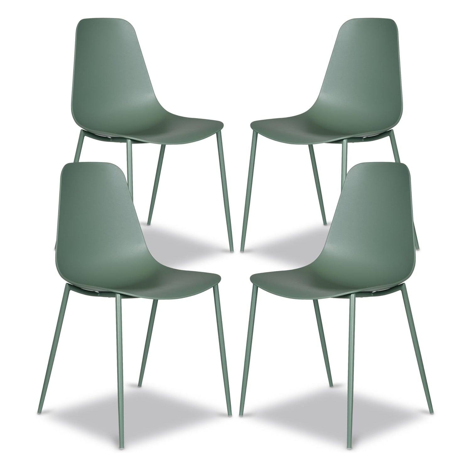POLY & BARK Isla Modern Kitchen Chairs Set of 4 - Plastic Dining Chair with Metal Legs - Quick Assembly Simple Cafe Chairs Plastic for Indoor or Outdoor - Pistachio Green
