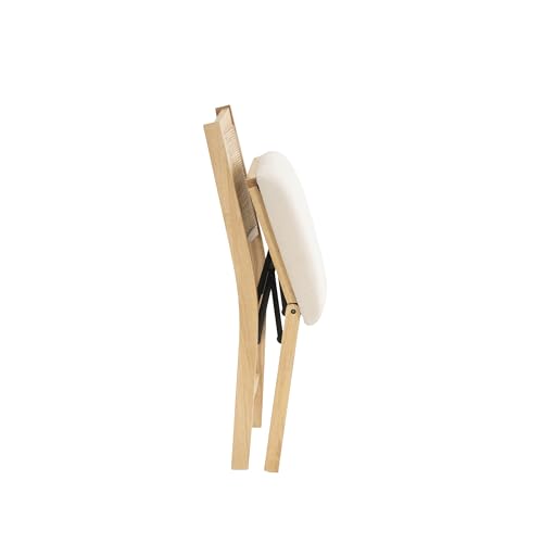Details: While this chair can fold up for easy storage, you will be tempted to leave it out because it looks so good. Real woven rattan cane back framed combine perfectly with the padded beige linen fabric upholstered seat. Unique metal folding mechanism allows for quick, smooth folding to be tucked away for future use. Provides extra seating in a dining room, kitchen, guest bedroom or living room. Proudly bring this out for the most formal of get togethers.
