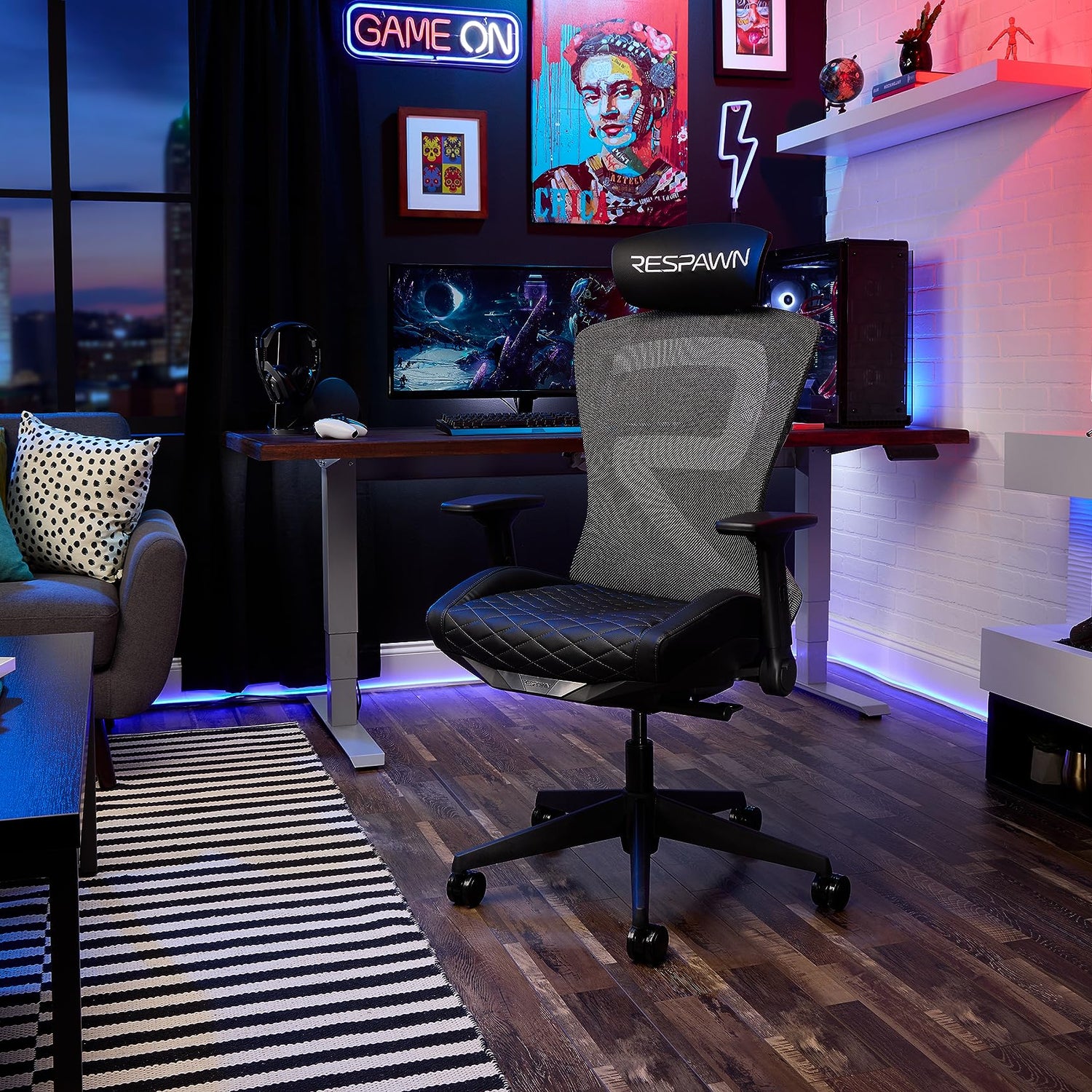 RESPAWN SPIRE Ergonomic Mesh Office Gaming Chair - High Back Home PC Computer Desk Reclining Gaming Chair, Adjustable Armrests, Adjustable Headrest, Knitted Mesh Back, Cooling Gel Seat - Stealth Black