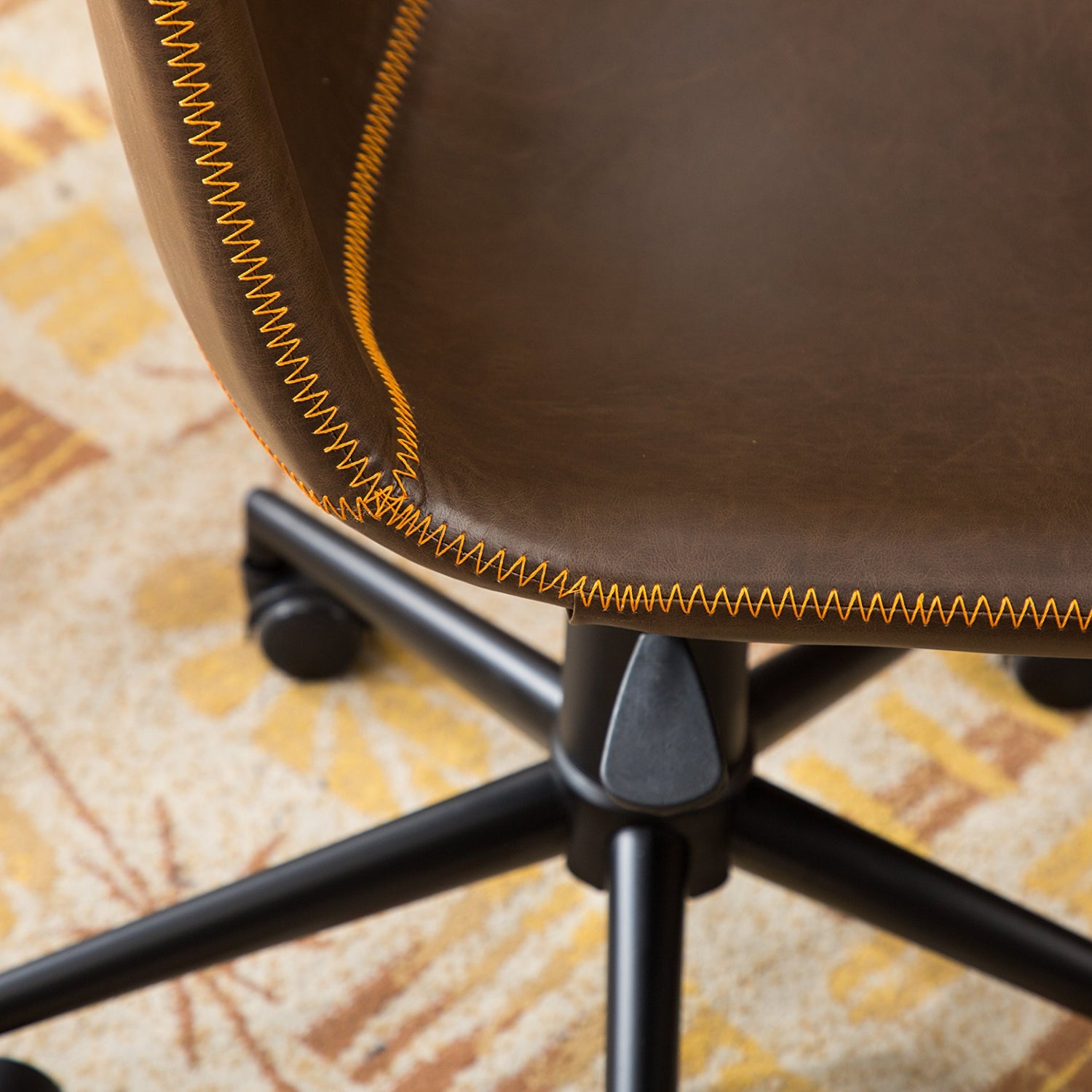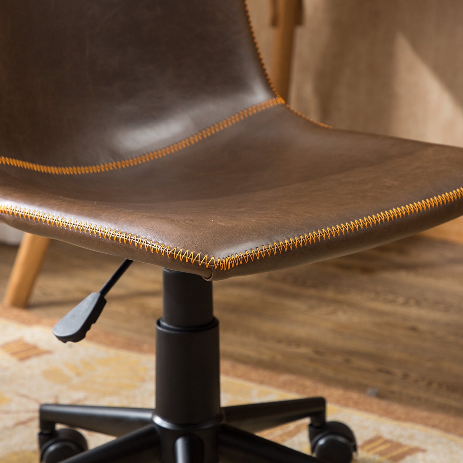 - The durable Matte Black Steel frame with 5 casters and the Antique brown faux Leather Seat made this chair a perfect combination of Functional and stylish.