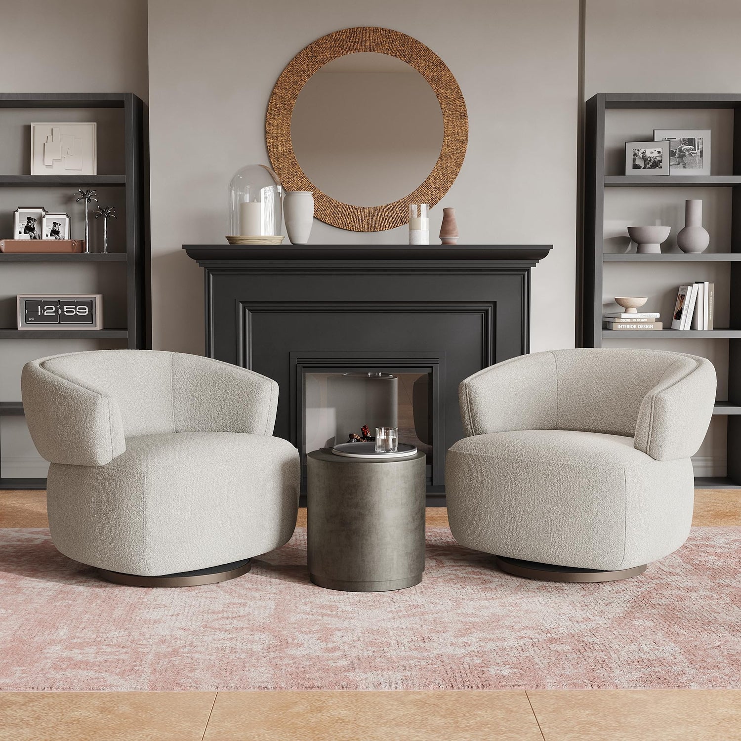 RoyalCraft Swivel Accent Chair Set of 2, Fully Assembled Round Barrel Chairs, Oversized Upholstered Armchair with 360-Degree Base, Modern Club Chair for Living Room, Bedroom, Office, Griege