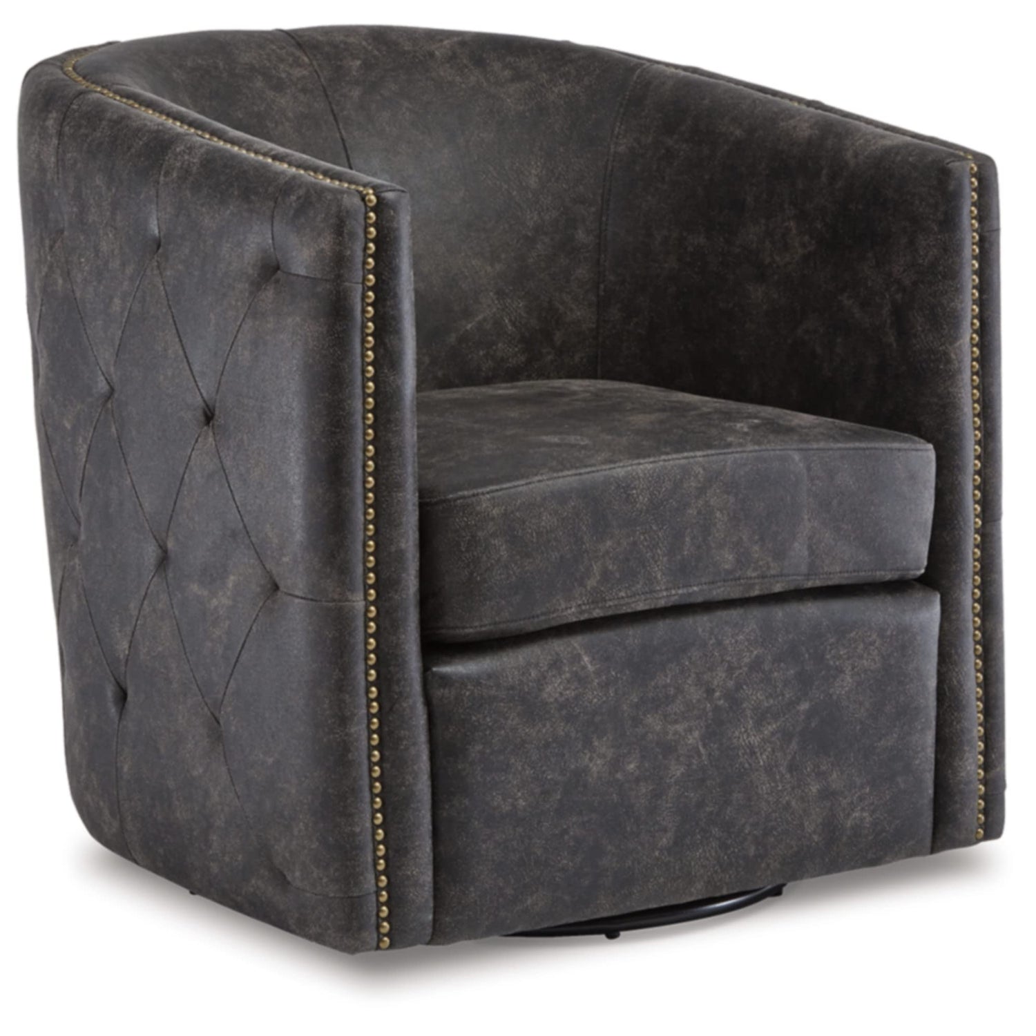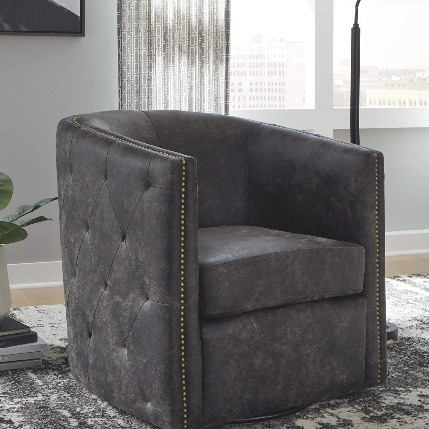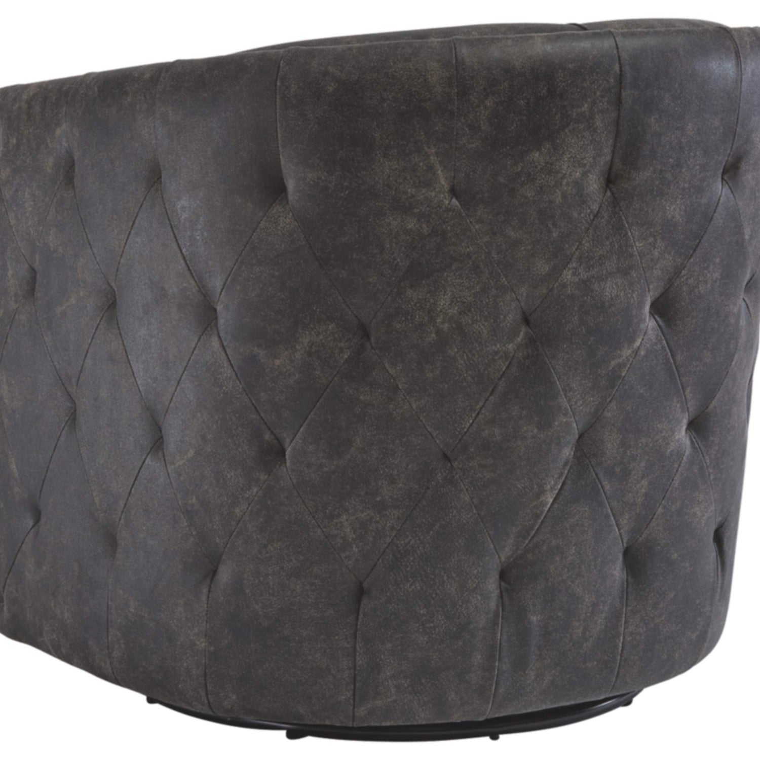 Signature Design by Ashley Brentlow Tufted Barrel Accent Swivel Chair, Distressed Black