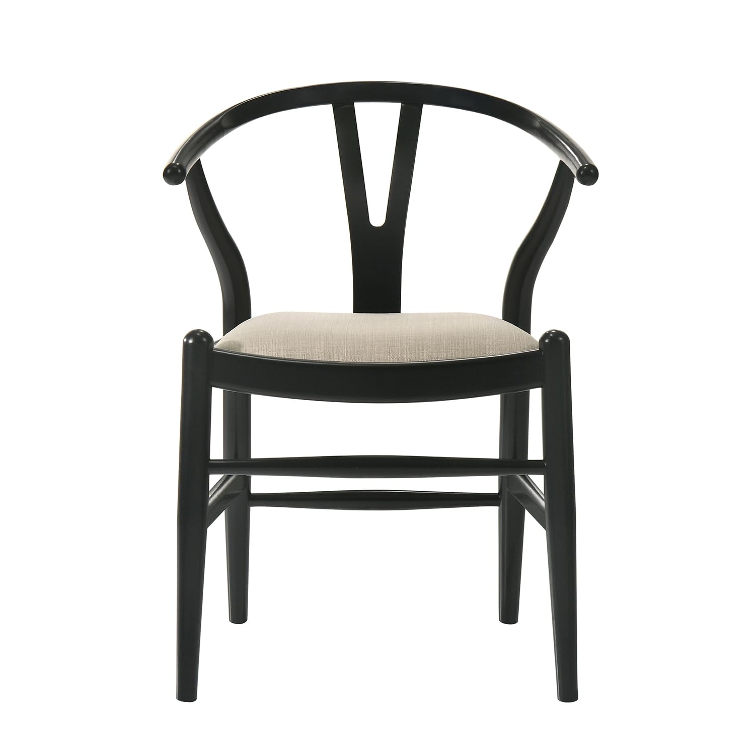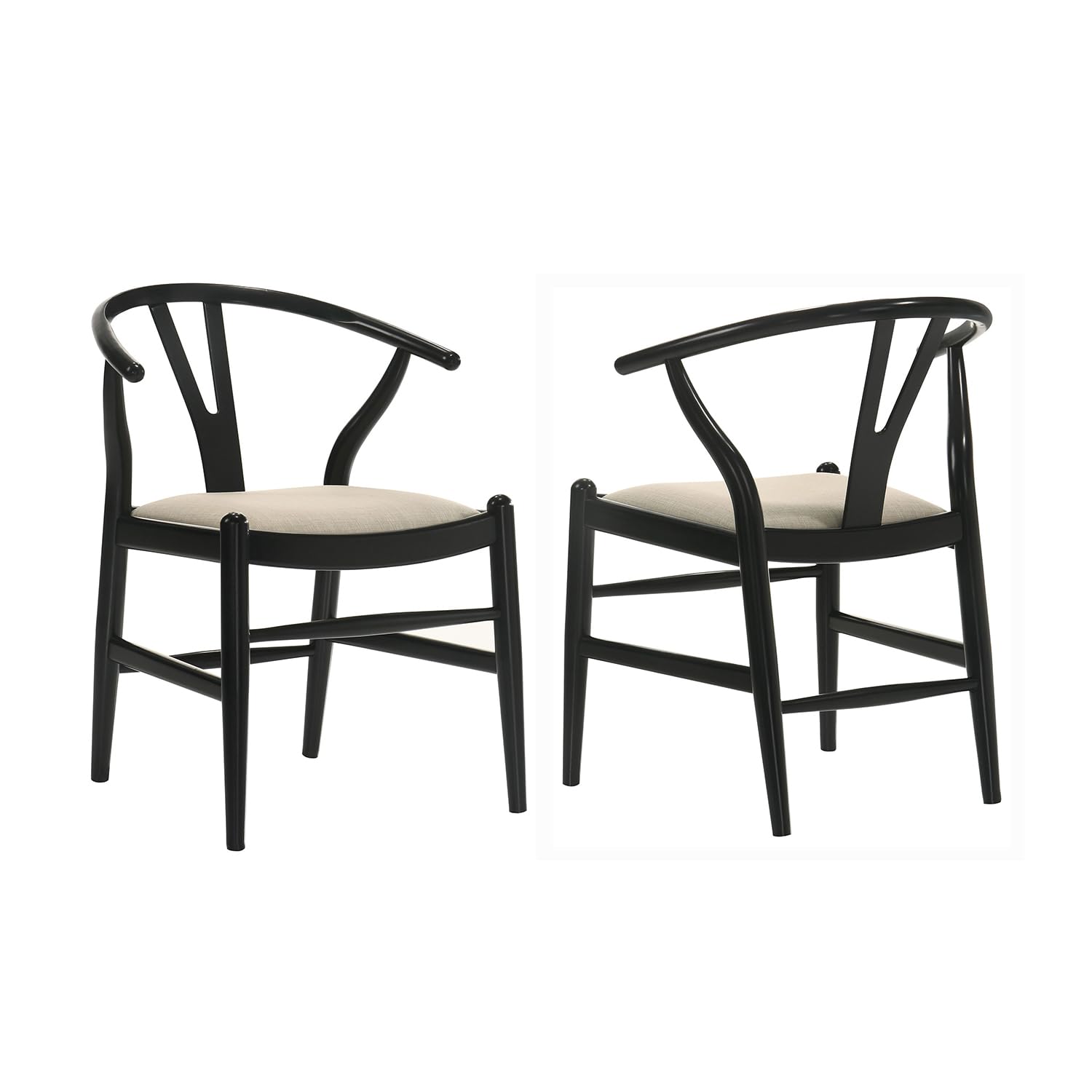 Simple Relax Set of 2 Upholstered Y-Shaped Back Wishbone Dining Side Chairs in Black and Beige
