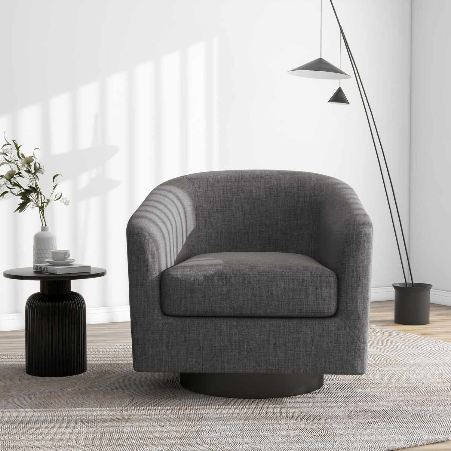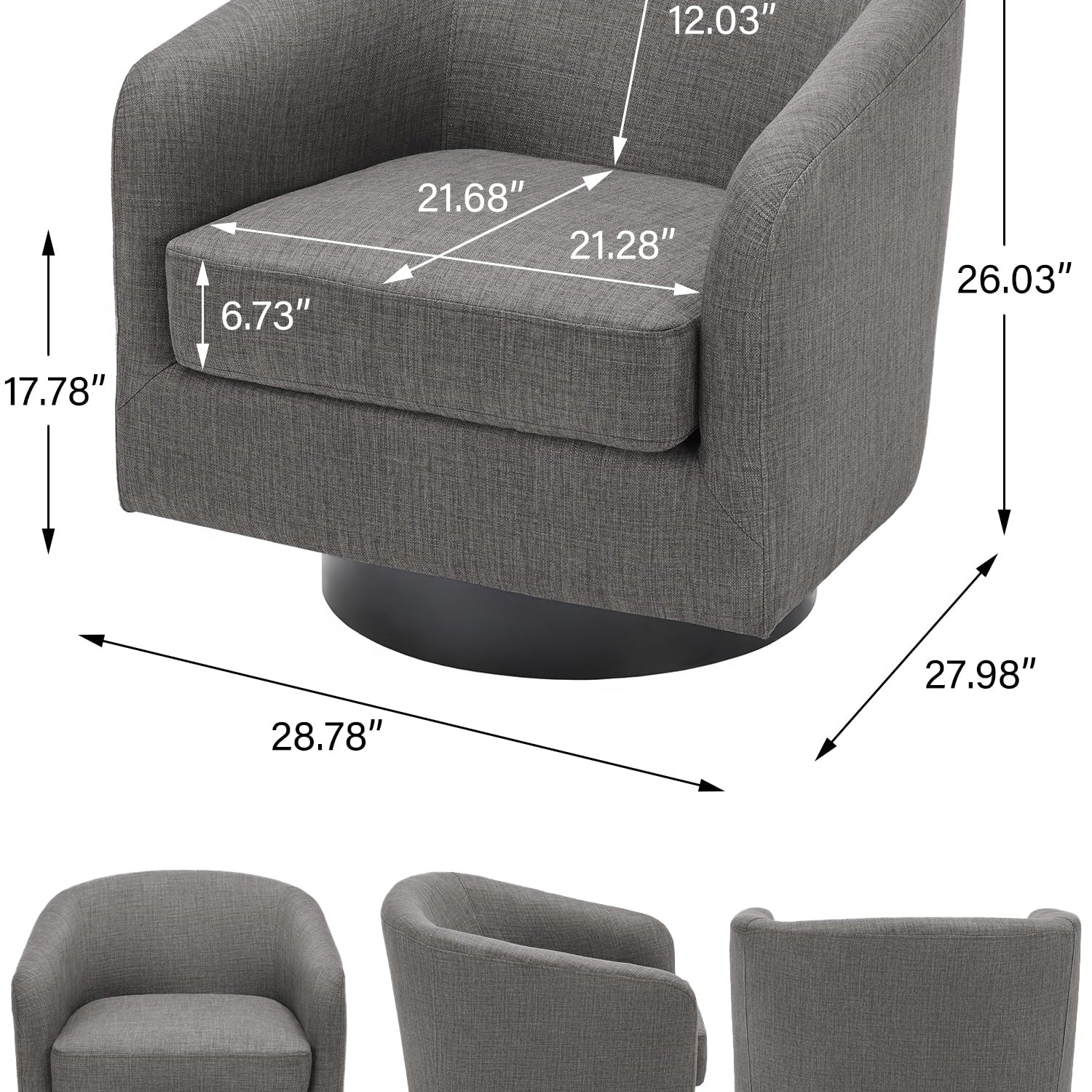- 360 Degree Swivel Barrel Chair: This 360 degree round swivel chair designed for your leisure comfort. Heavy solid turntable, making it more stable and not wobbly