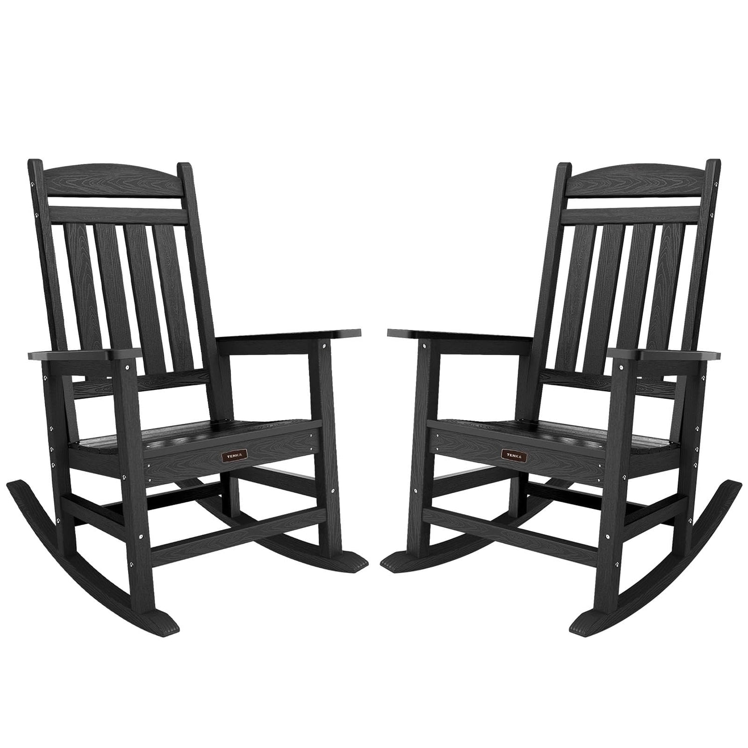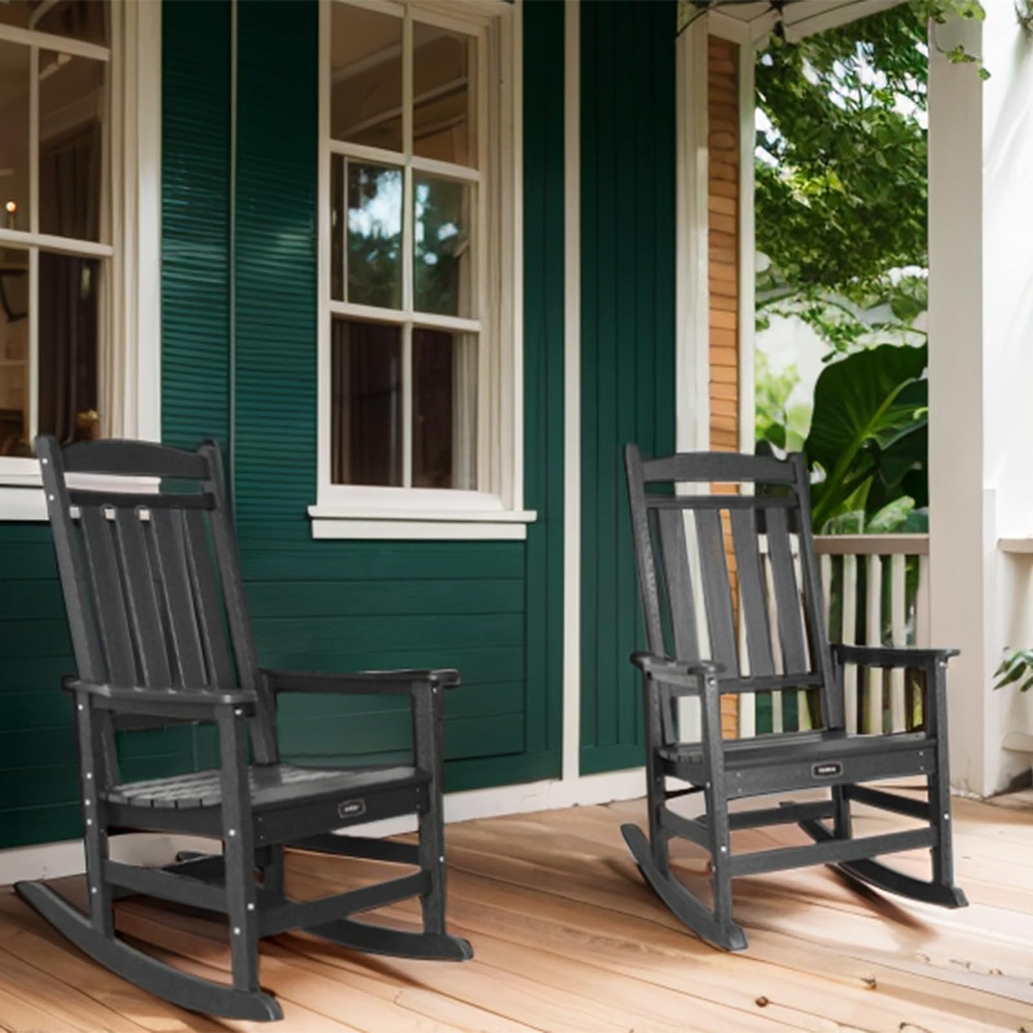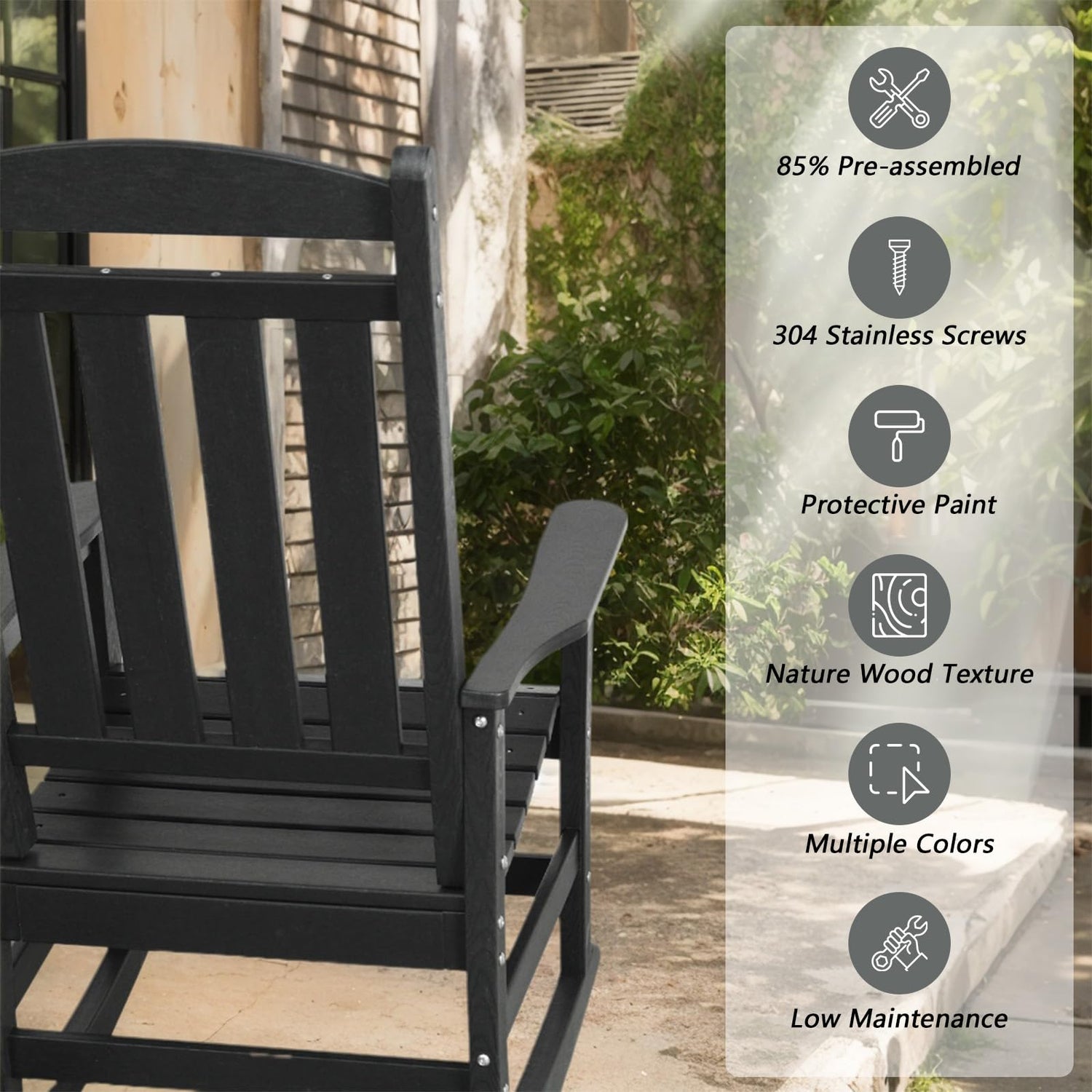 TenKa HDPE Patio Oversized Rocking Chair Set of 2, Outdoor Rocking Chair for Adults, All Weather Resistant Porch Rocker for Lawn Garden