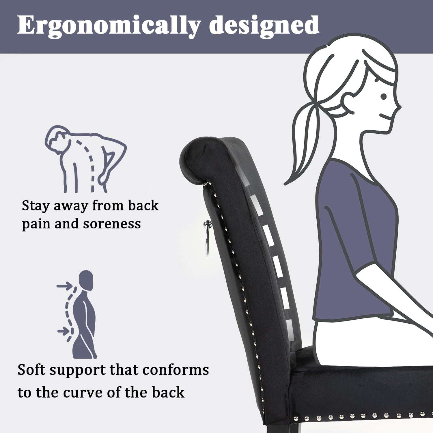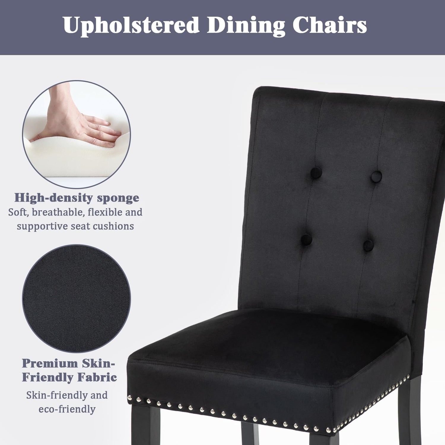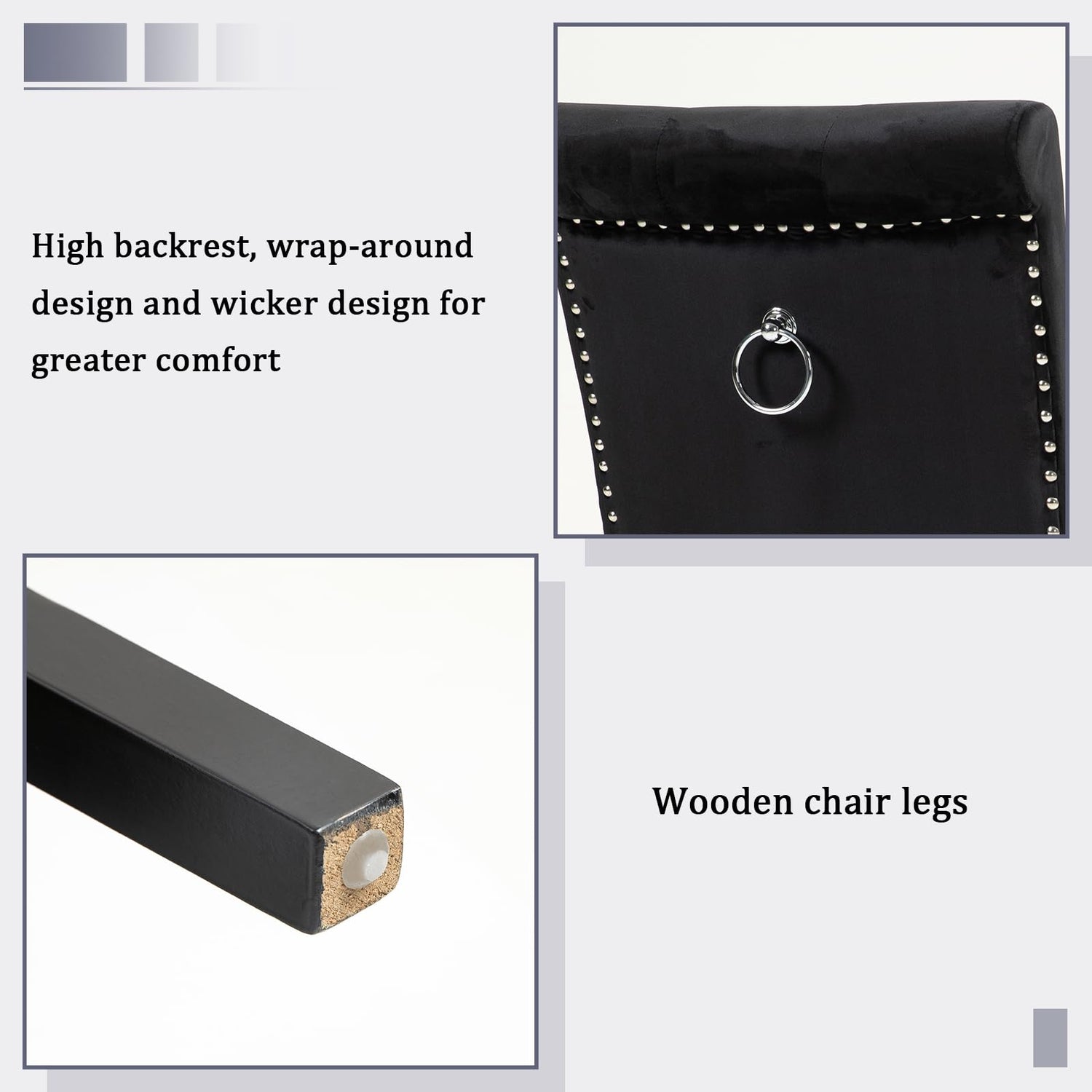 VDAOQVG Upholstered Velvet Dining Room Chairs Set of 2 for Dining Room, Set of 2 Kitchen Chairs with Gold Nailhead and Metal Ring Upholstery, Solid Wood Dining Chairs Set of 2 for Restaurant (Black)