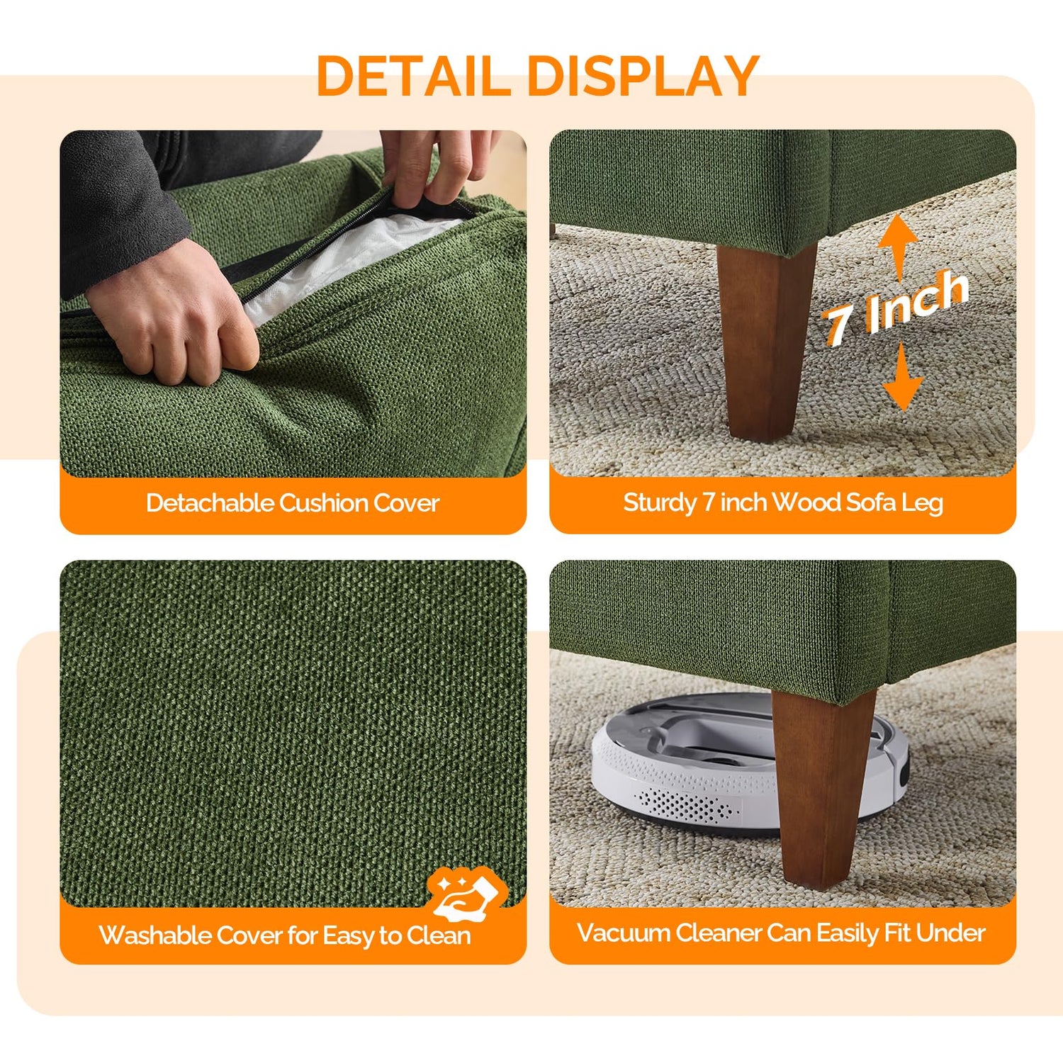 • Easy Assembly--Before starting assembly, please carefully check the completeness of the couch parts and hardware. By following up on our installation manual, we believe you will master the quickest way to get this sofa couch assembled.