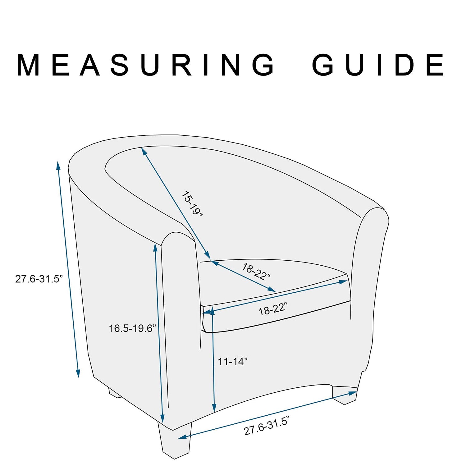 • Stretch Tub Chair Cover - 2 piece tub chair cover is crafted from luxurious velvet plush fabric, including 1 piece of base cover and 1 piece of the cushion cover, Please refer to the product size chart. Then, measure your tub chair prior to purchasing to ensure the best fit.