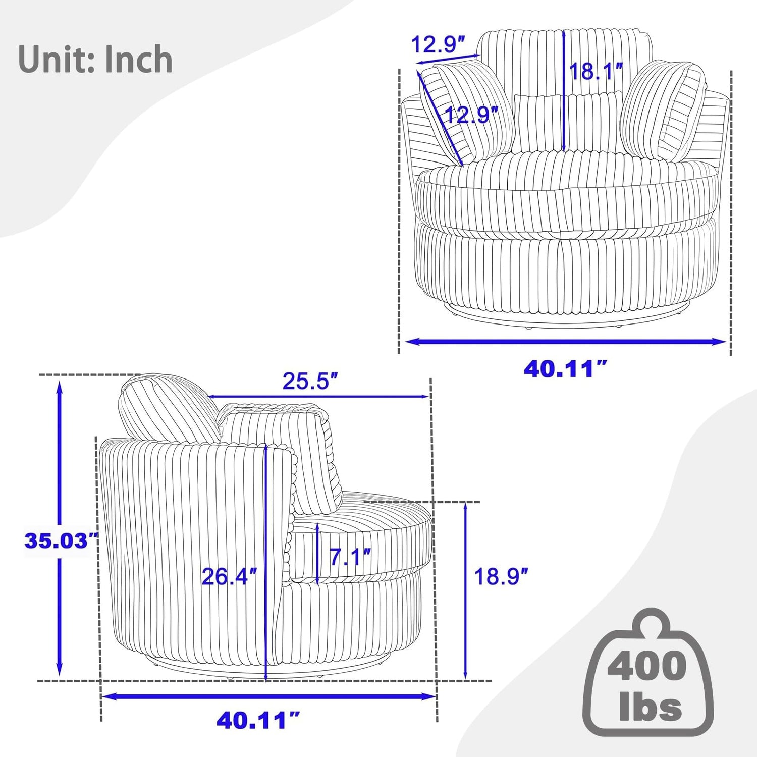 YABTOP Oversized Swivel Accent Barrel Chair with Pillows,Modern Round Plush Cuddler Reading Chair Comfy for Bedroom Living Room,Corduroy Gray