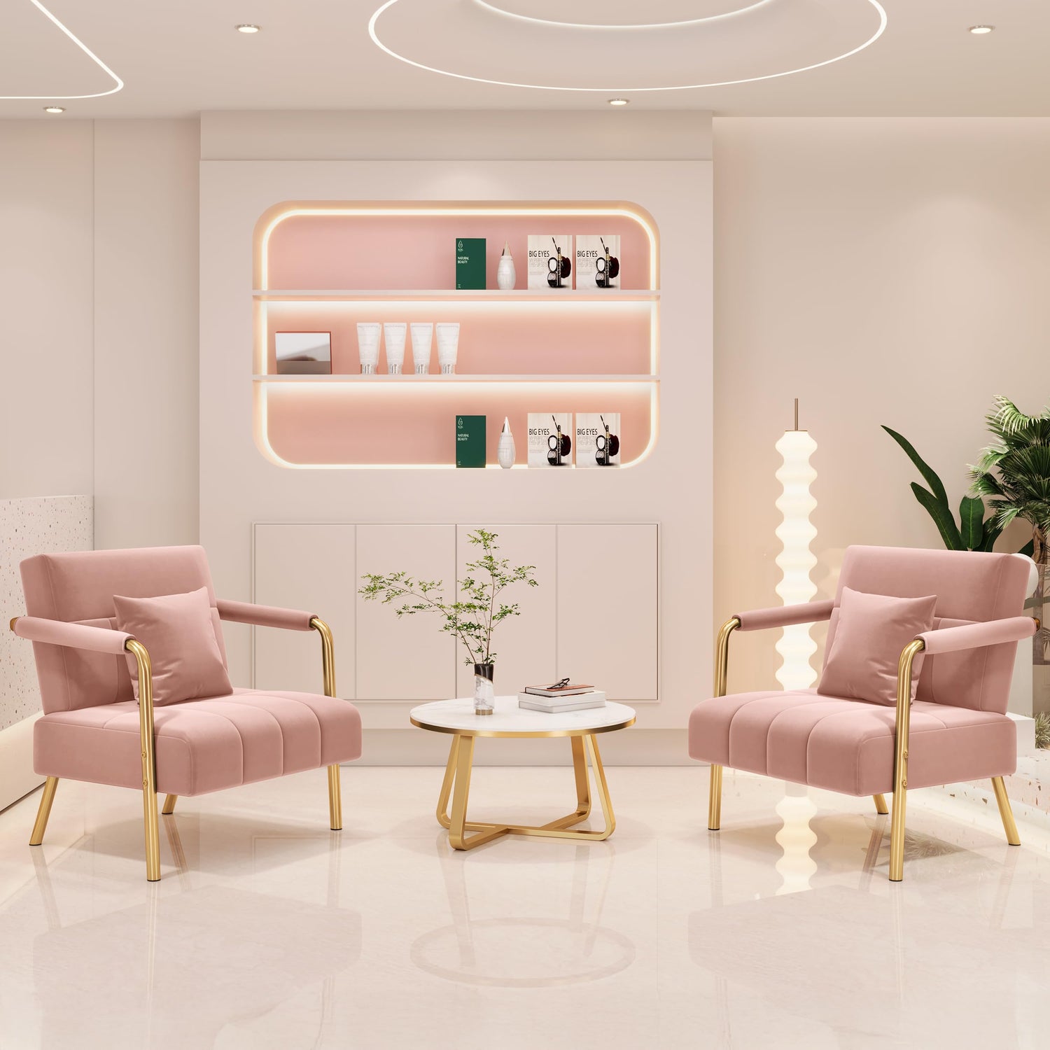 Yaheetech 30" W Modern Sofa Small Sofa Luxurious Velvet Fabric Couch with Gold-Tone Metal Arms and Legs for Living Room, Home Office, Studio Pink