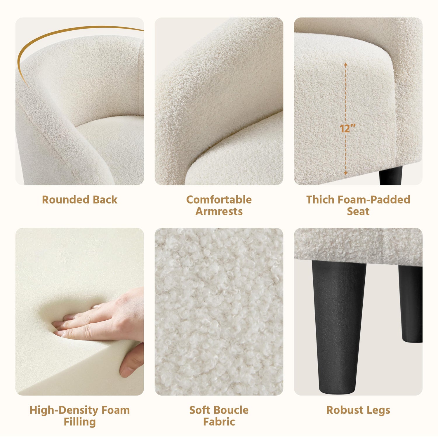 • Compact Footprint, Rich In Comfort: The seat measures 19 inches in width and 20 inches in depth, whether you need a spot to curl up with a good book or sit upright to read or watch TV, this curved barrel chair is a practical addition to your space