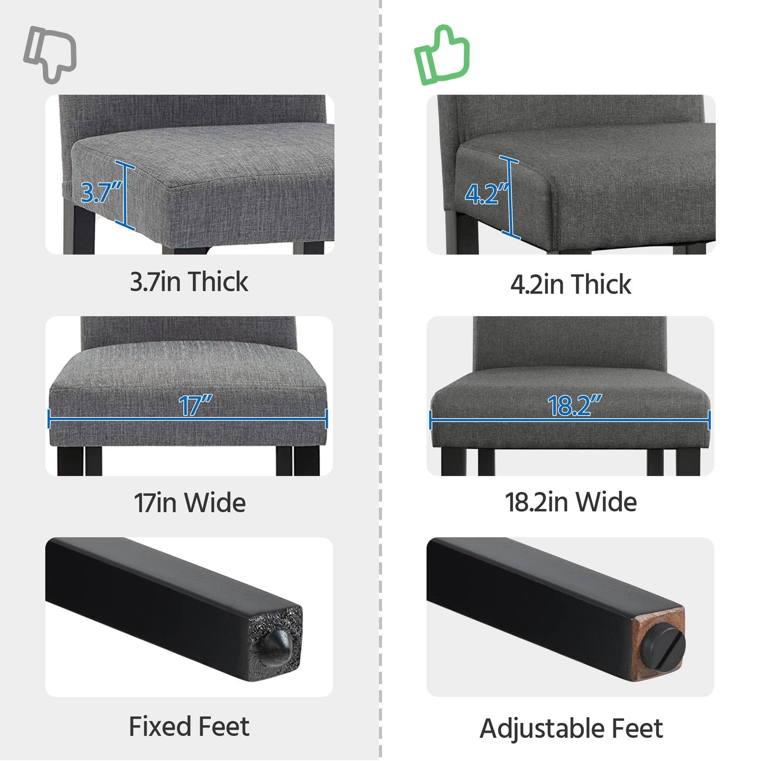 - Sturdy Construction: These parsons dining chairs are mainly made of 270g polyester fabrics, 80g non-woven fabrics, foam and wood. The superior material we adopt makes these chairs more firm and durable.