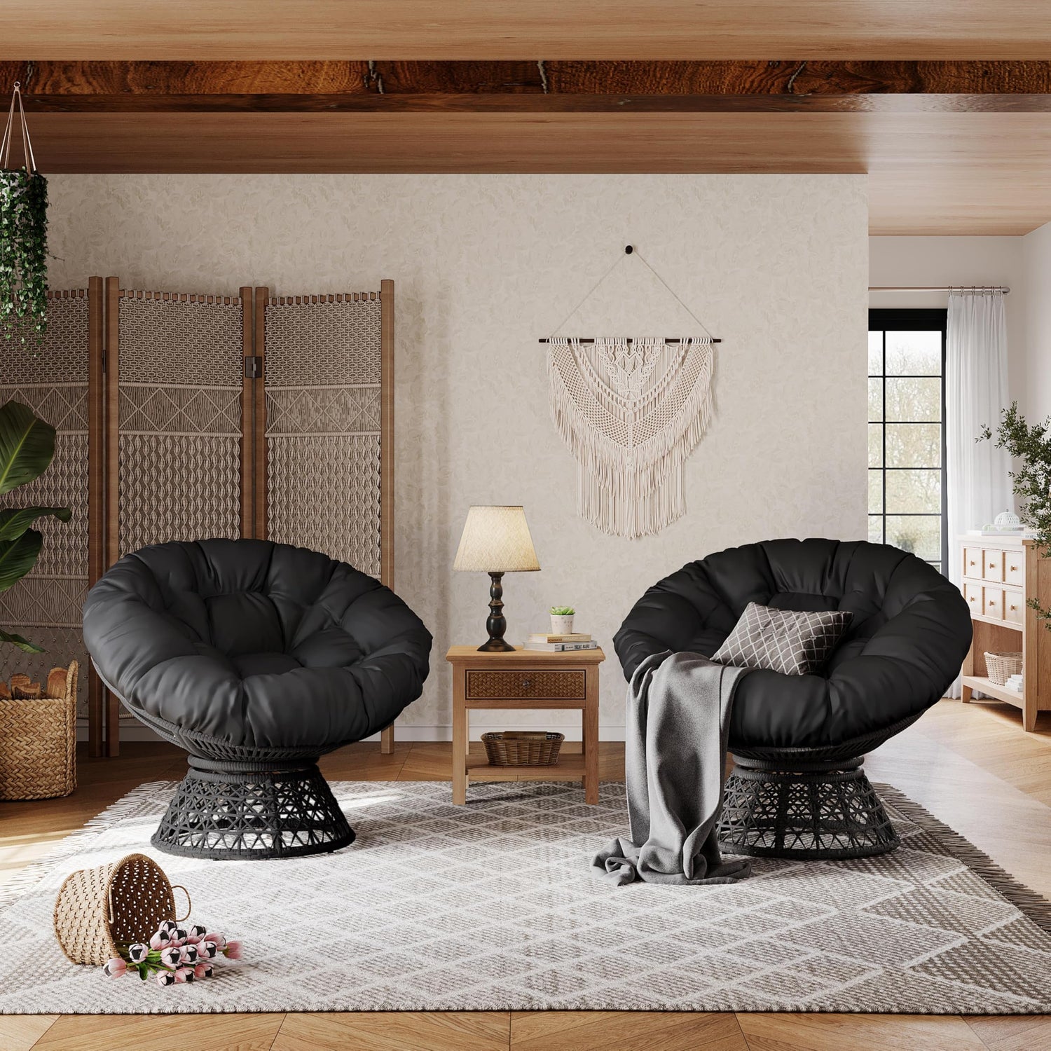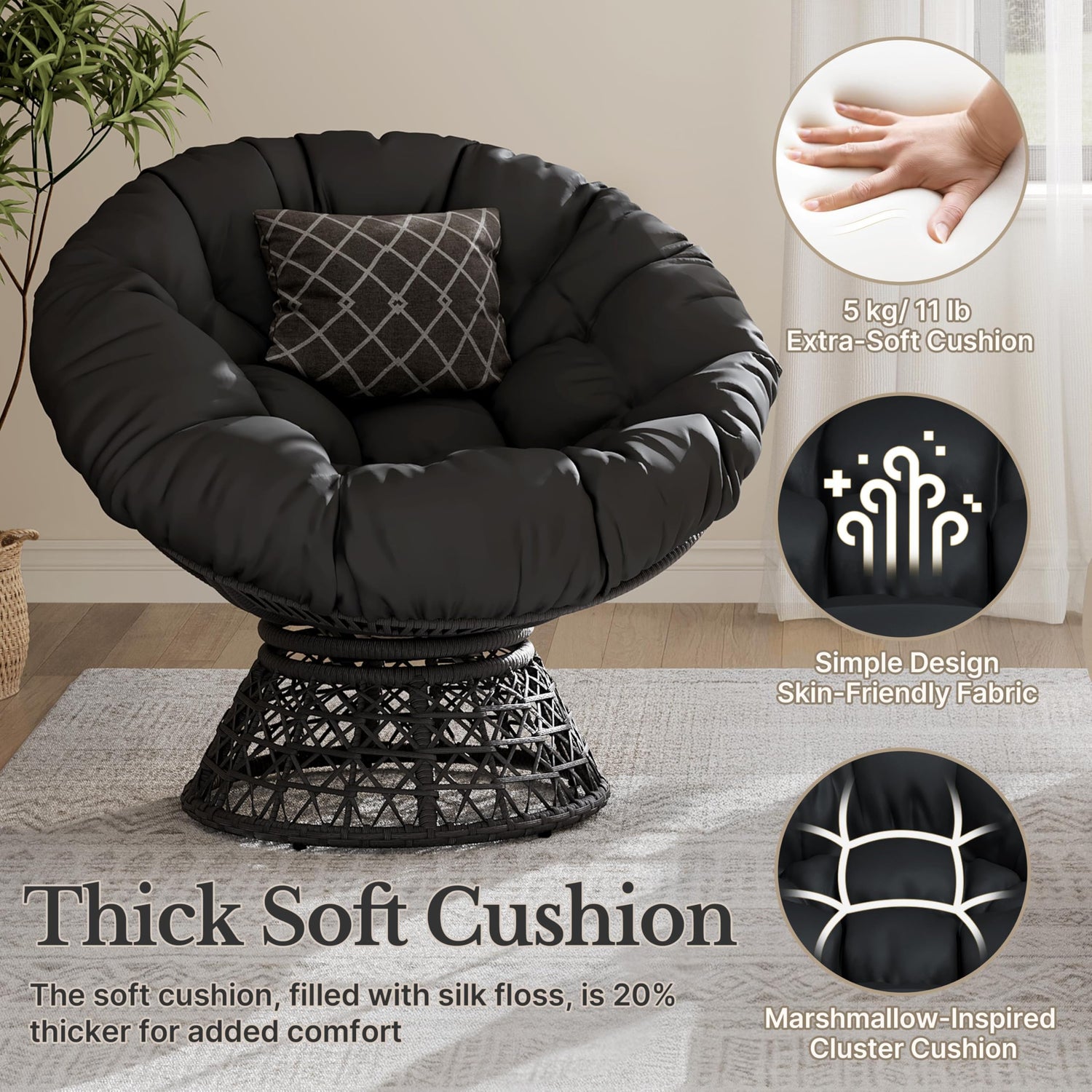 Yaheetech Indoor Papasan Chairs with Thick Tufted Cushions and Frame, Swivel Wicker Ergonomic Lounge Reading Chairs for Living Room/Bedroom, Black