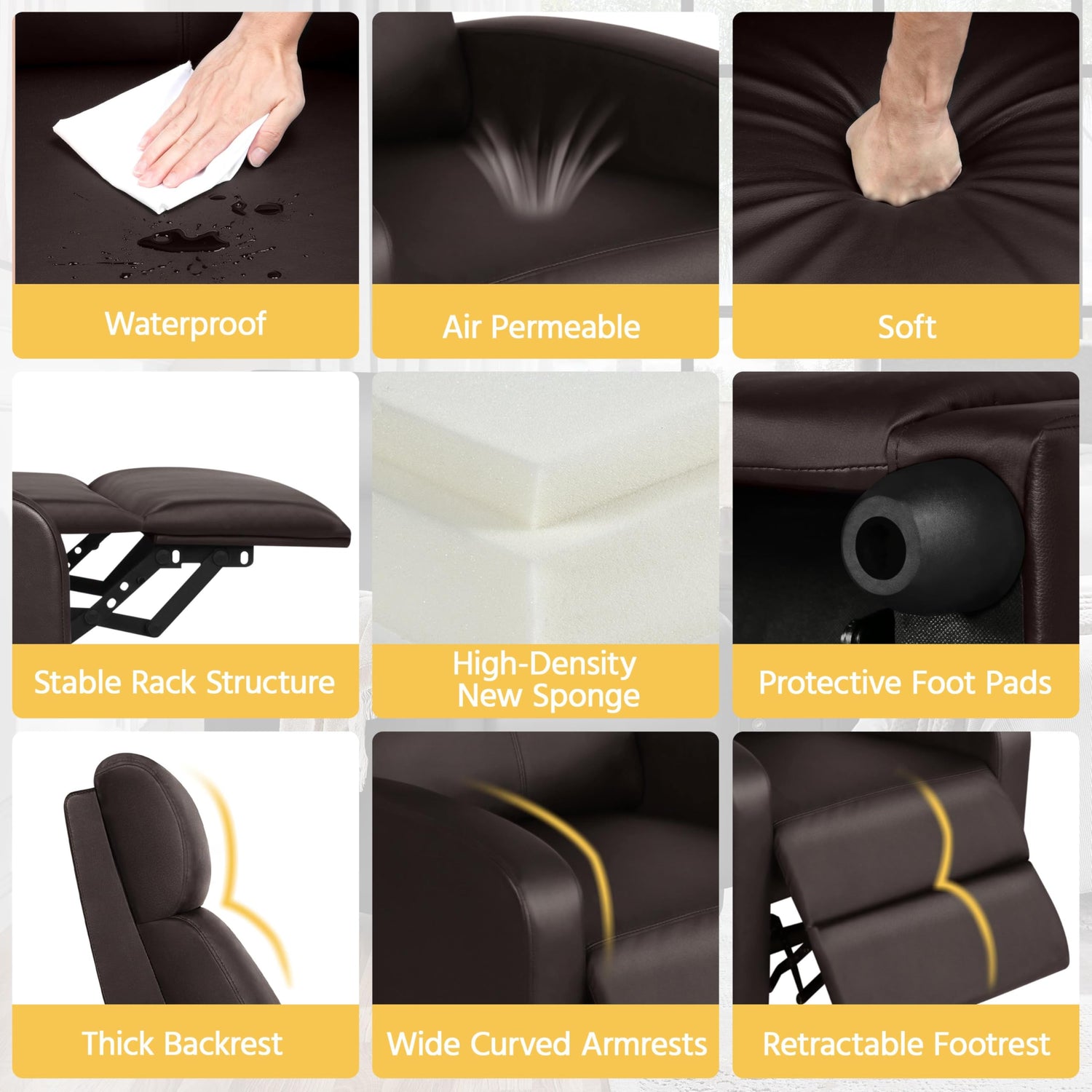 Yaheetech Recliner Chair Faux Leather Recliner Sofa Adjustable Modern Seat Club Chair Home Theater Seating Brown
