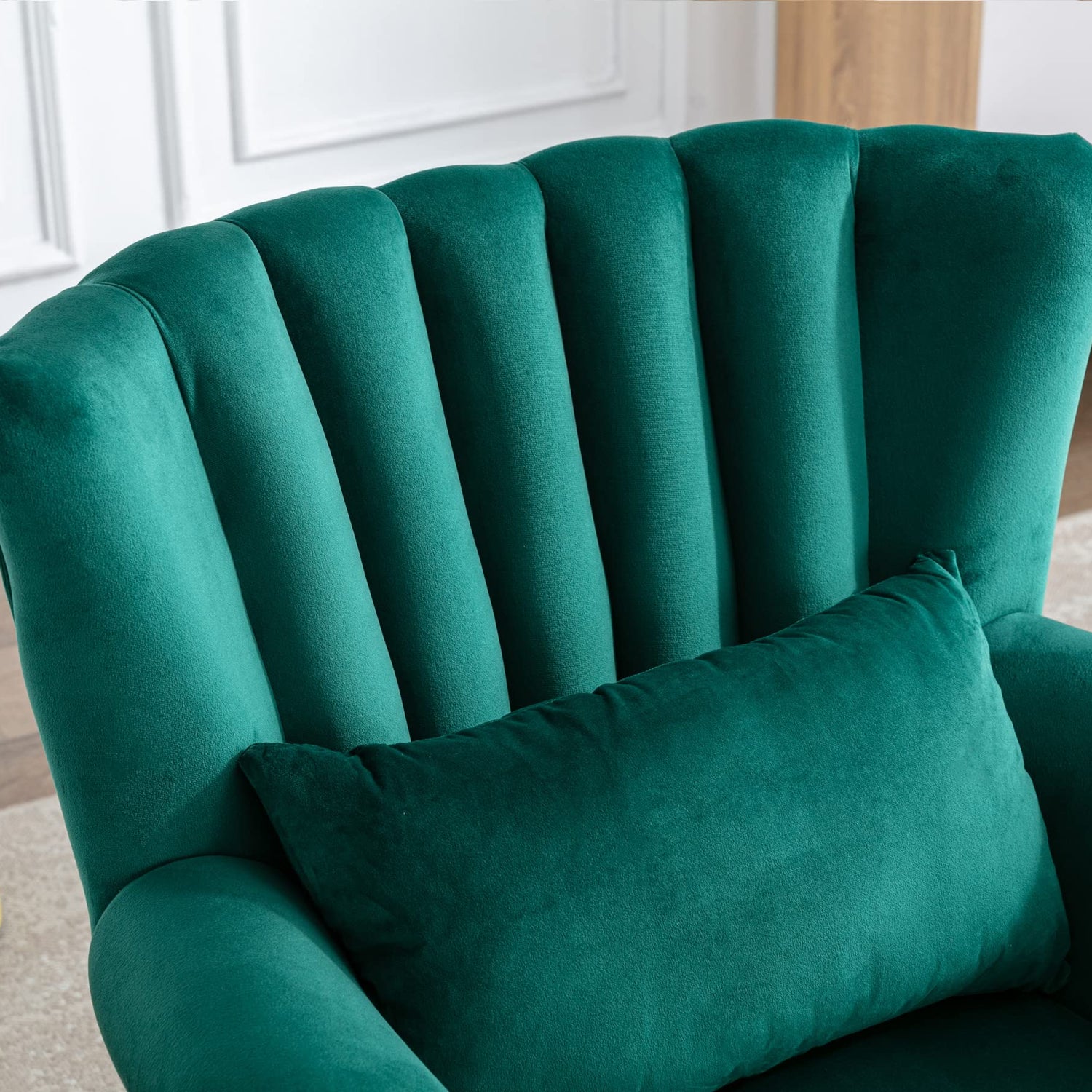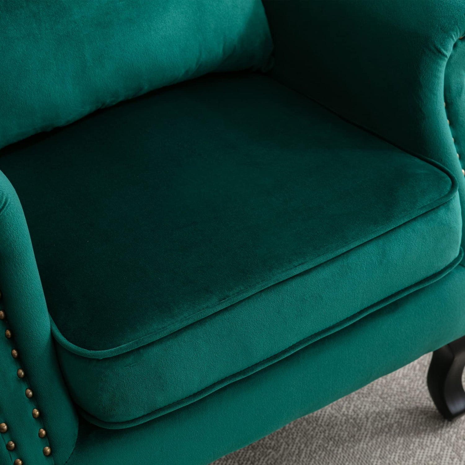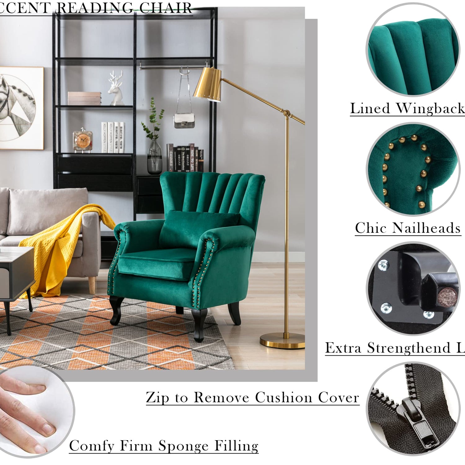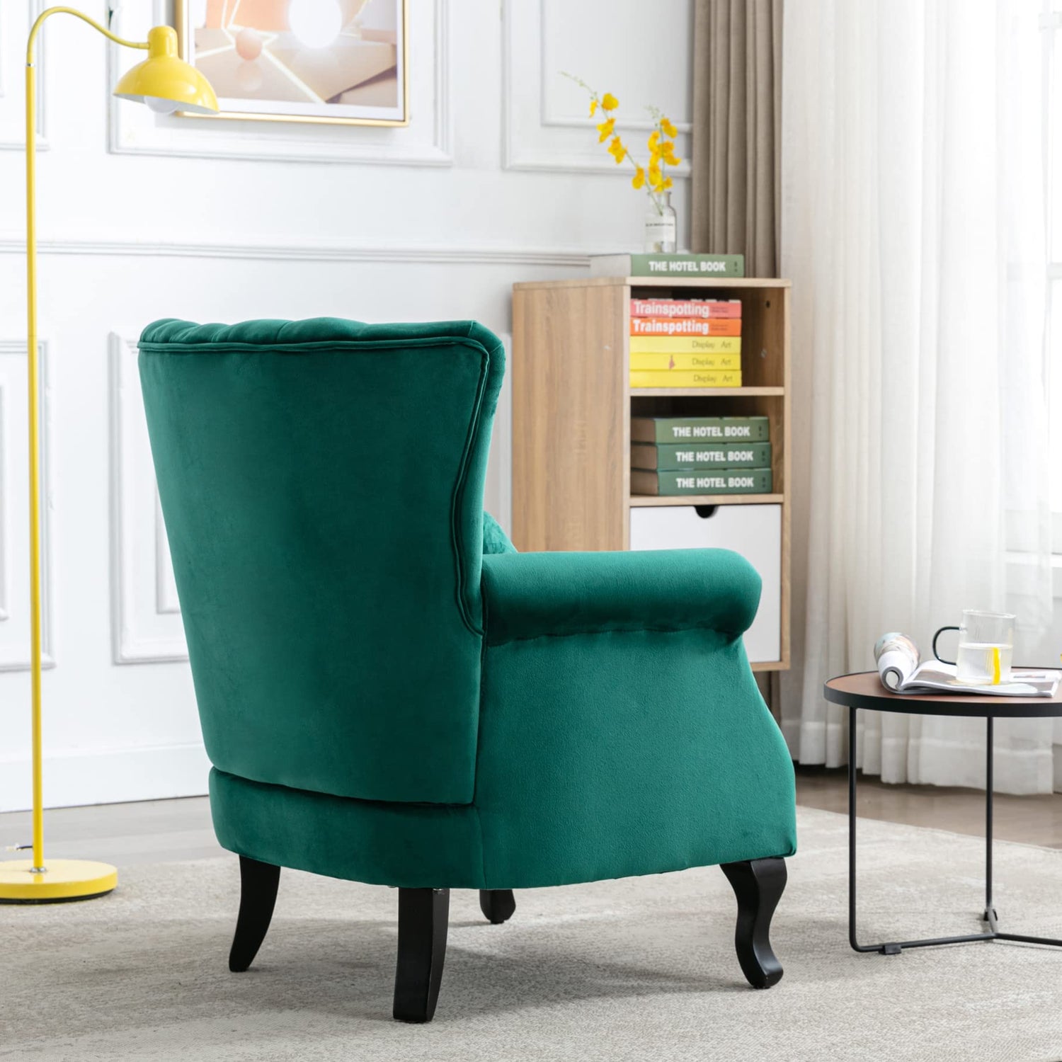 ZETZU Mid Century Modern Accent Chair Upholstered Armchair Comfy Velvet Fabric Single Sofa with Lined Wingback for Small Spaces Bedroom Living Room, Velvet Green, 30.1D x 30.5W x 35H in