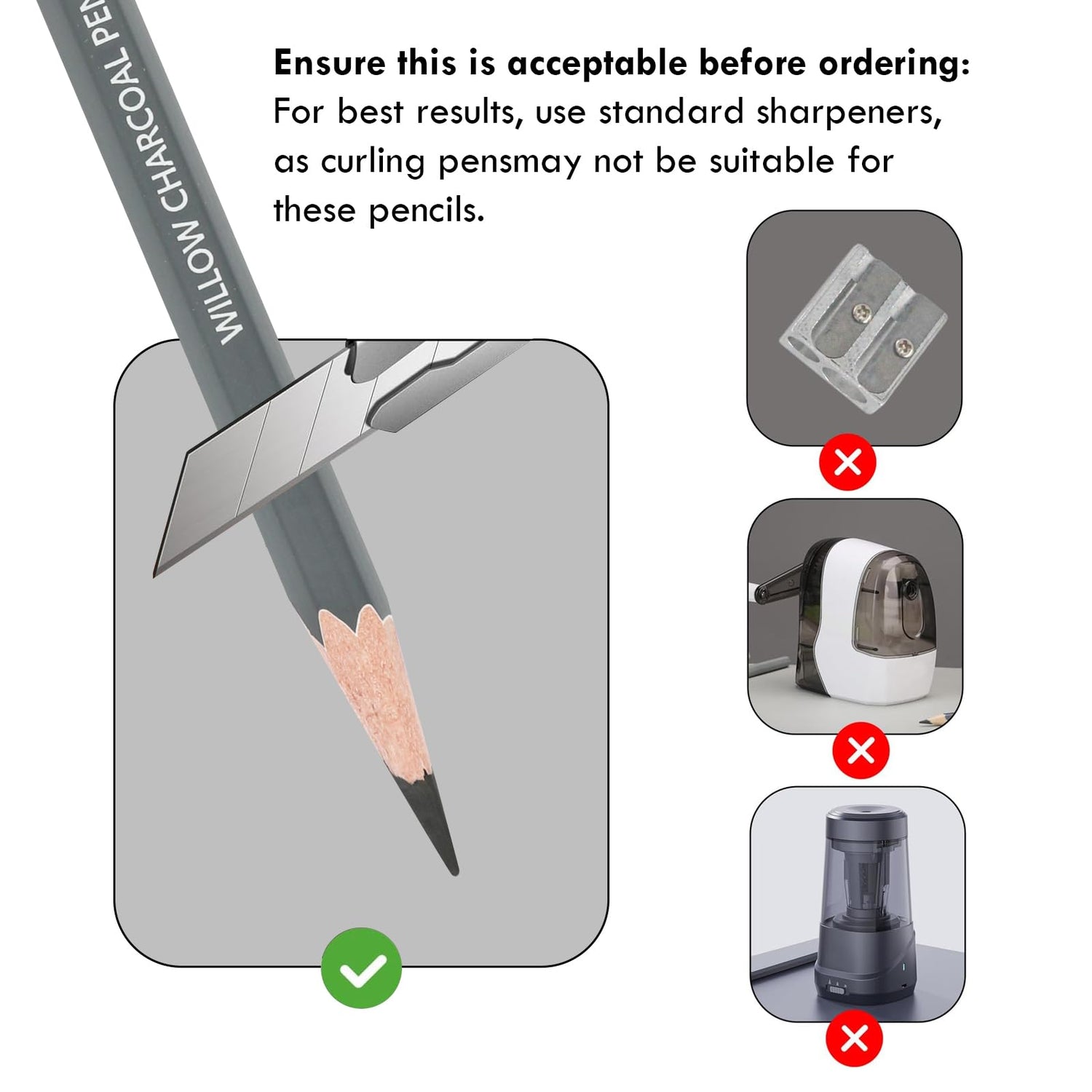 - Easy To Use: Create beautiful, broad strokes by holding the willow charcoal pencils at an angle, or achieve fine details using the sharpened point. Ideal for figure, portrait, or still-life drawings in the classroom. An economical choice for art students. Requires a special pencil sharpener or art knife.