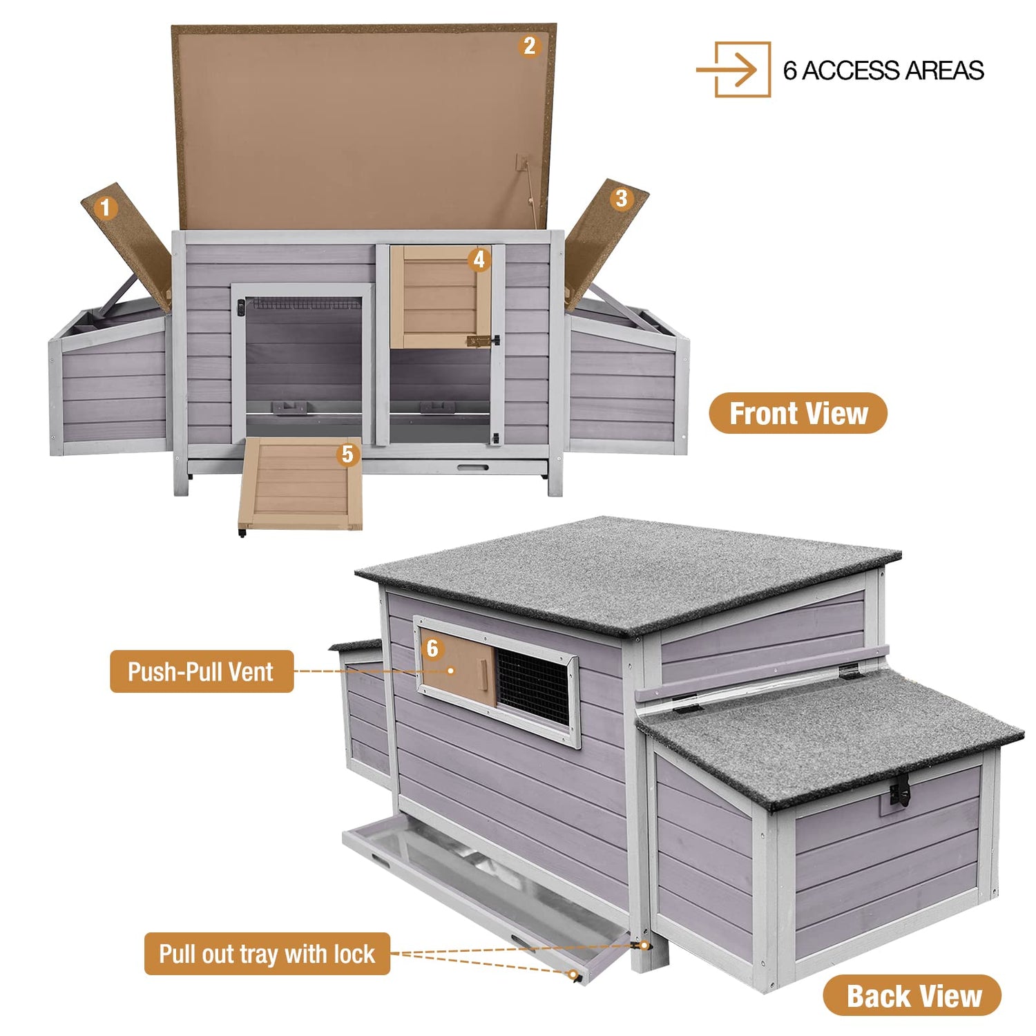 - đŁ ăSAFTY & STURDYă100% solid fir wood,Asphalt roof cover all areas provide a dry and comfortable space for your pets,predator-resistant latch keeps your Chicken flock secure.opening doors of back and front for easy catching your pets.