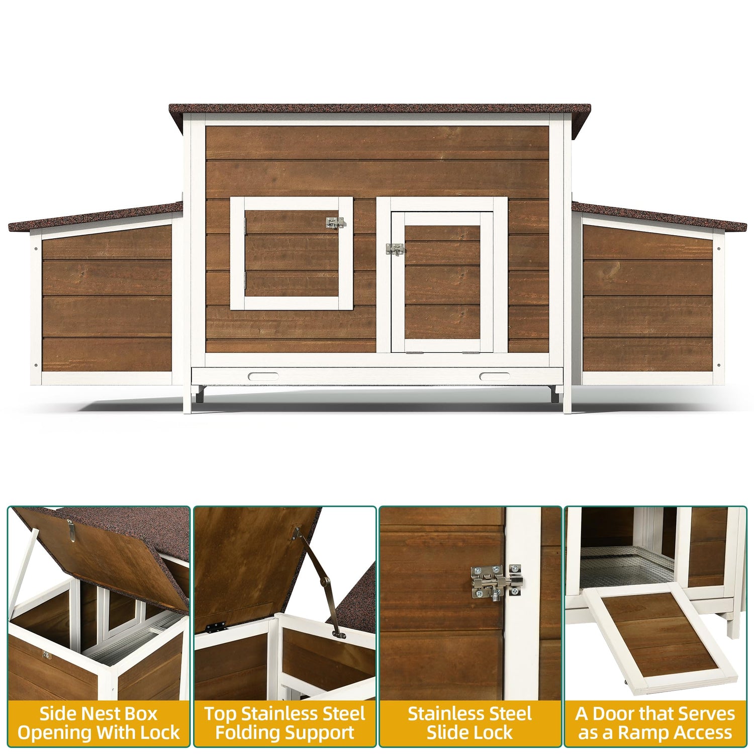 - Large, Versatile Nesting Boxes: Two big, comfy nesting boxes (1 each side) with removable dividers. Customize the laying space inside your outdoor chicken pen easily