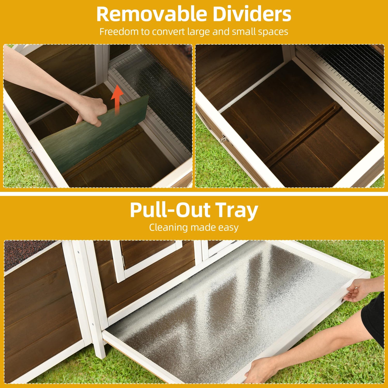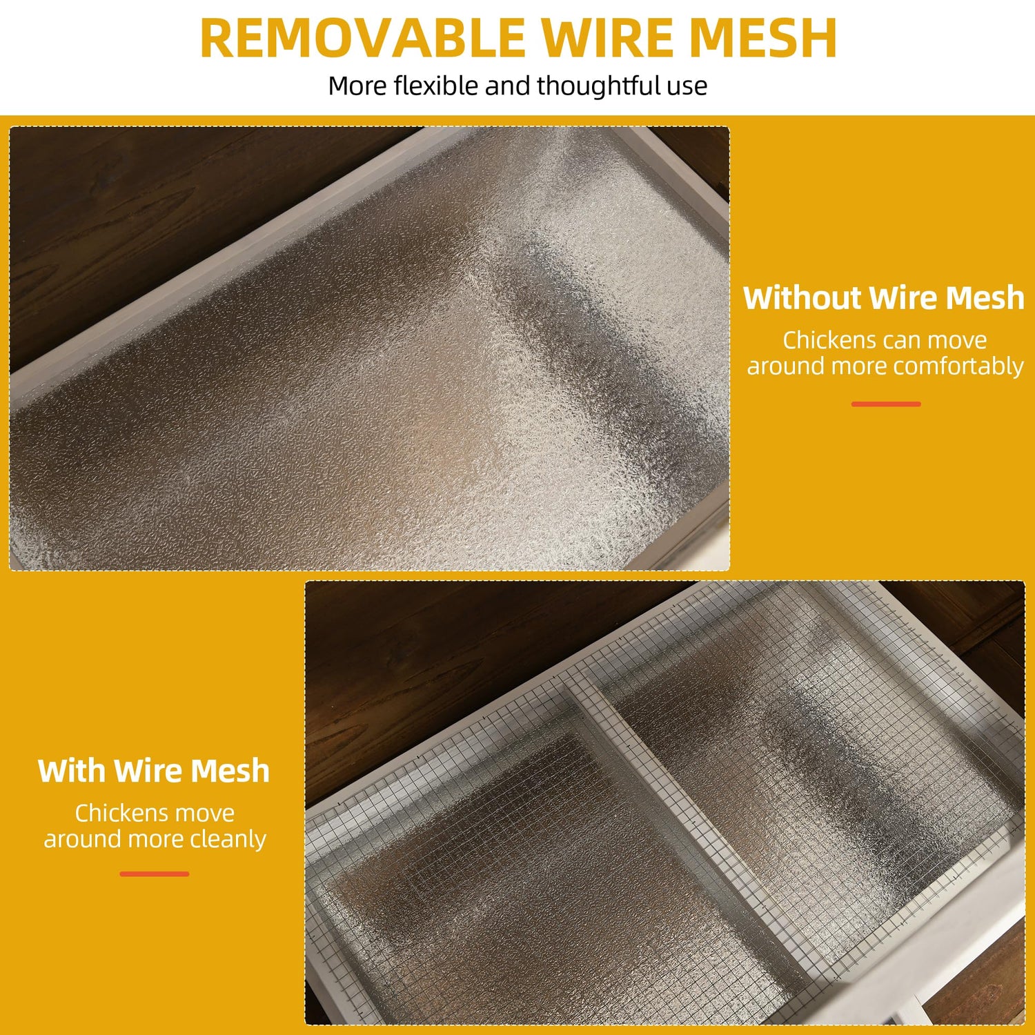 - Easy-Clean Removable Tray: Deep slide-out droppings tray & detachable heavy-duty wire mesh floor. Separates chickens from waste for a cleaner, healthier flock