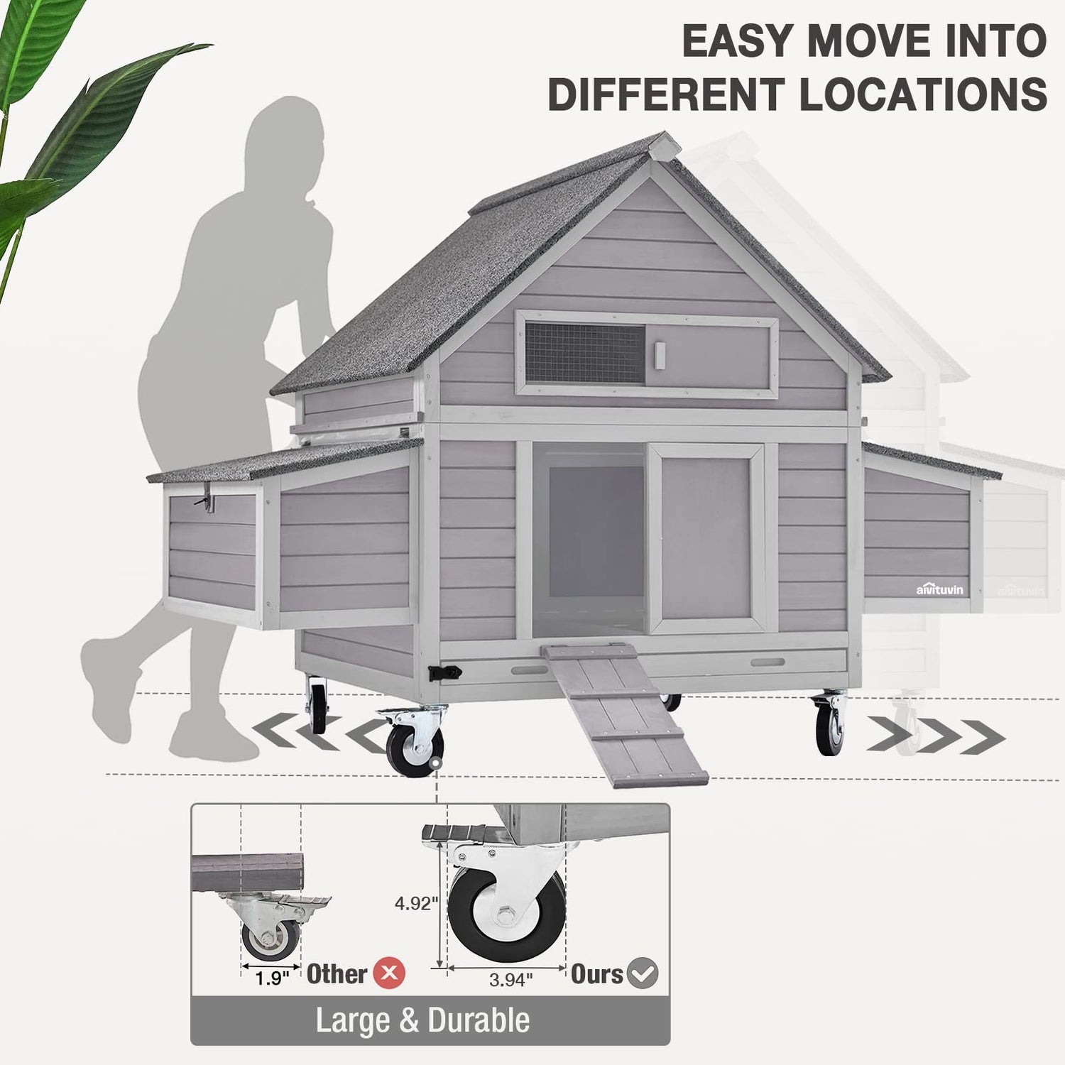 - Easy Movement: 4 durable wheels makes this backyard chicken house easily movable.