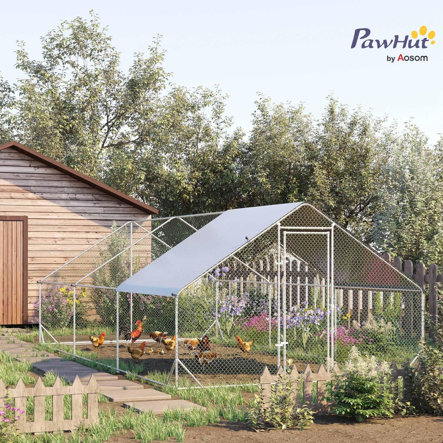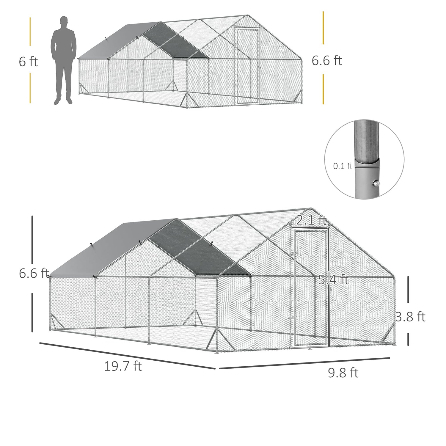 PawHut Large Chicken Coop Metal Chicken Run with Waterproof and Anti-UV Cover, Spire Shaped Walk in Fence Cage Hen House for Outdoor and Yard Farm Use, 1" Tube Diameter, 9.8' x 19.7' x 6.6'