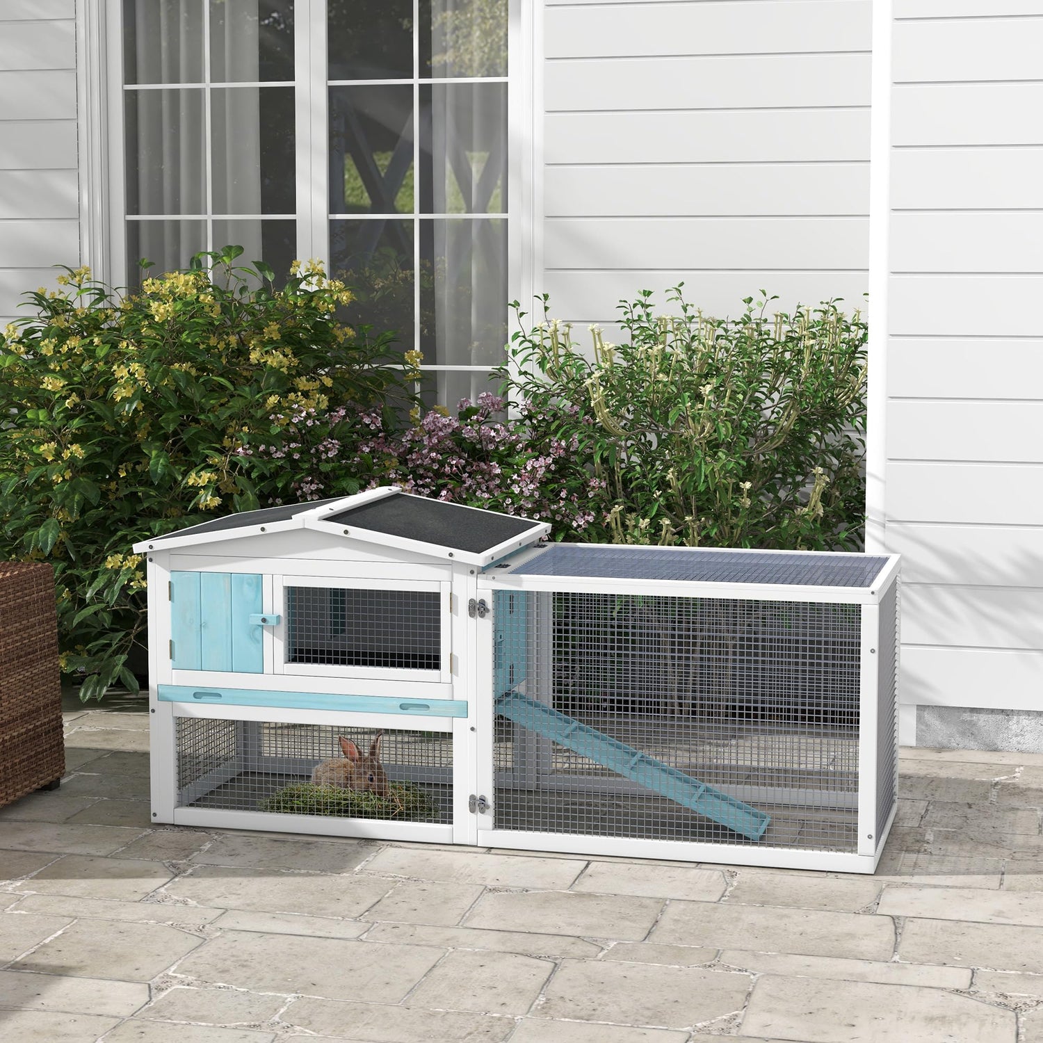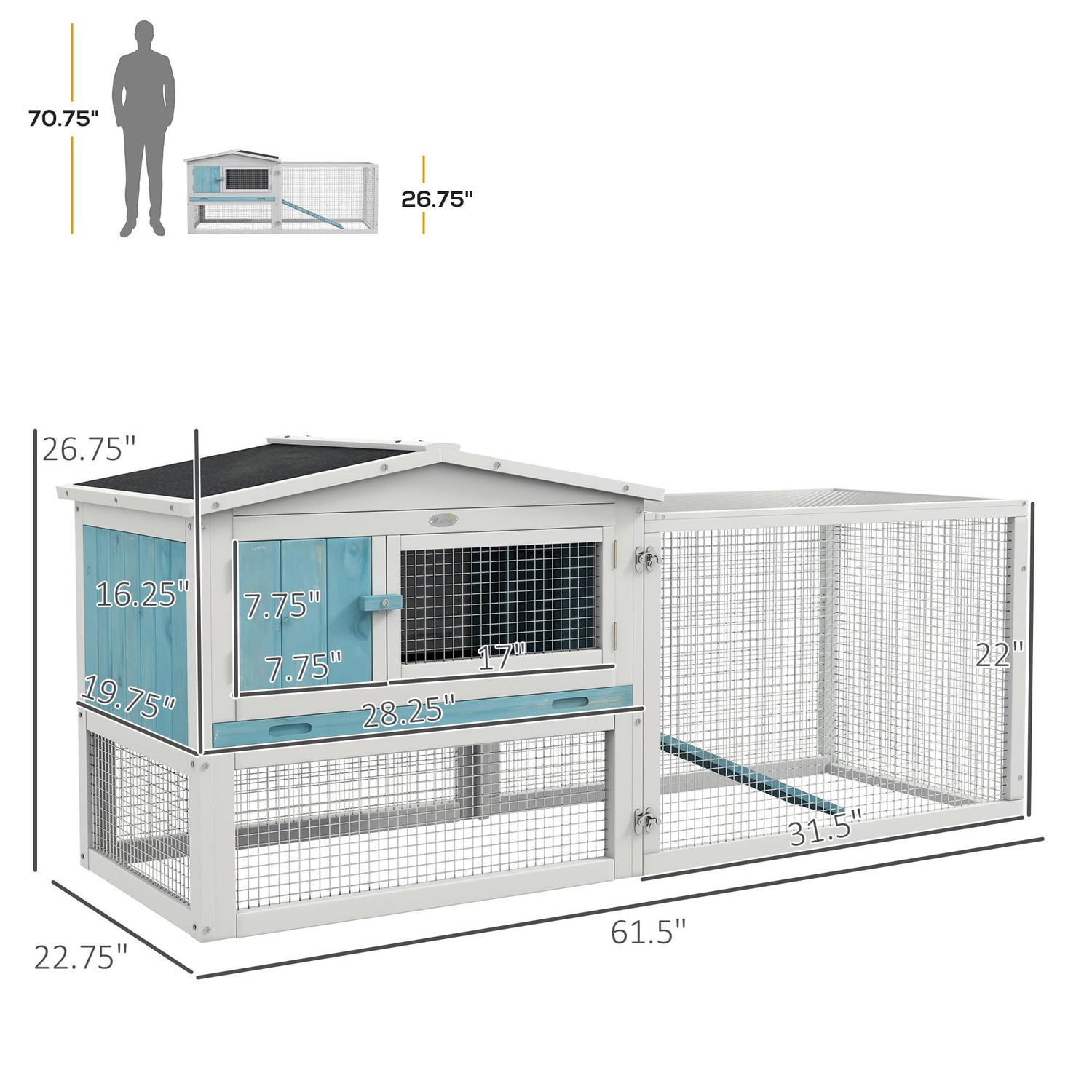 PawHut Rabbit Hutch 2-Story Bunny Cage, Guinea Pig Cage Indoor Outdoor, Small Animal House with Slide Out Tray, for Rabbits, Chickens, Ducks, 61.5" x 23" x 27", Light Blue