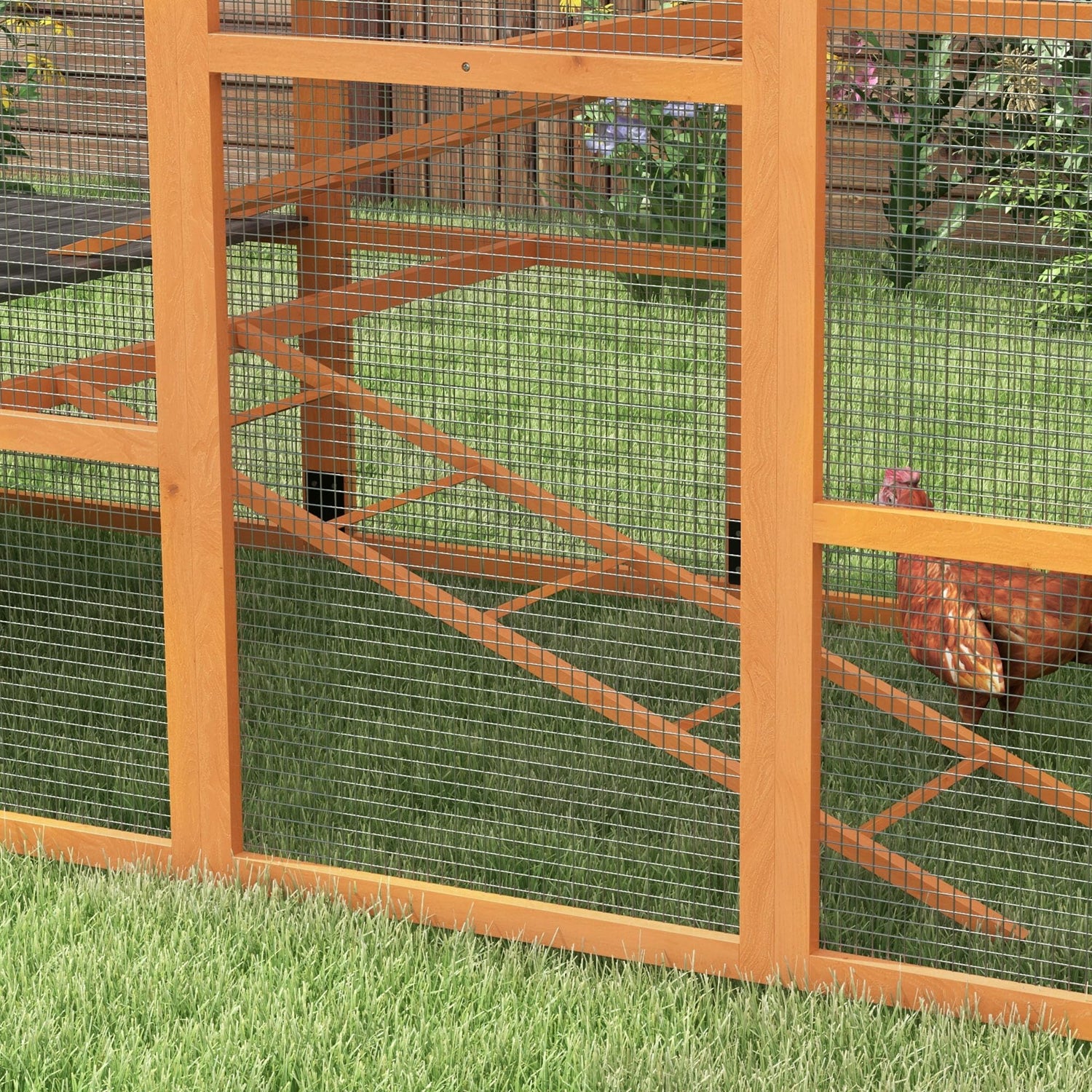 PawHut Wooden Chicken Coop Run for 6-10 Chickens, Hen House Add-On with Storage, Perches, 141.75" x 48" x 61", Orange