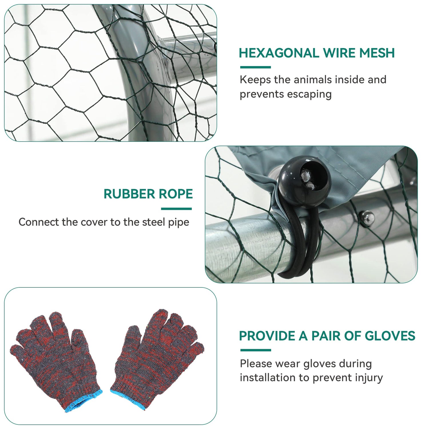 - Easy to Assemble: This walk-in poultry cage includes an upgraded user manual and numbered parts for easy installation; The detailed instructions will have you accurately assemble the metal poultry shed in no time