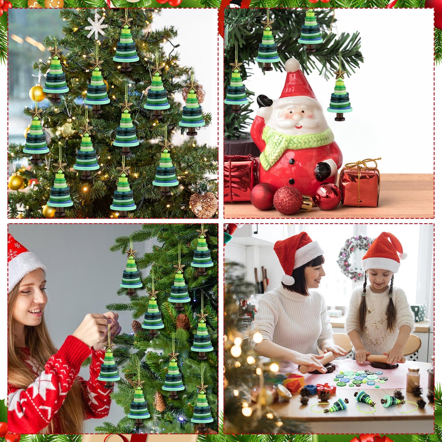 • Versatile Buttons: these green buttons are suitable for crafting Christmas projects; They can be applied to decorate Christmas trees, wreaths, bows, and dolls; Additionally, they can be hung on gifts, sewn onto clothing, or even displayed in cars; You can make the most of these buttons by incorporating them into your Christmas decorations