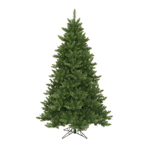 Details: Features perfectly shaped tapered tips that are a medium green color and have a natural. lush look and feel. Product Features: Unlit. 9962 tips. 1.75" wide tips. Full profile tree. Flame retardant. Hinged branch construction. For indoor use only. Comes with a FREE black metal tree stand. Dimensions: 14' high (from the base of stand to the top of the tree). 88" base diameter (at the widest point). Material(s): PVC/metal